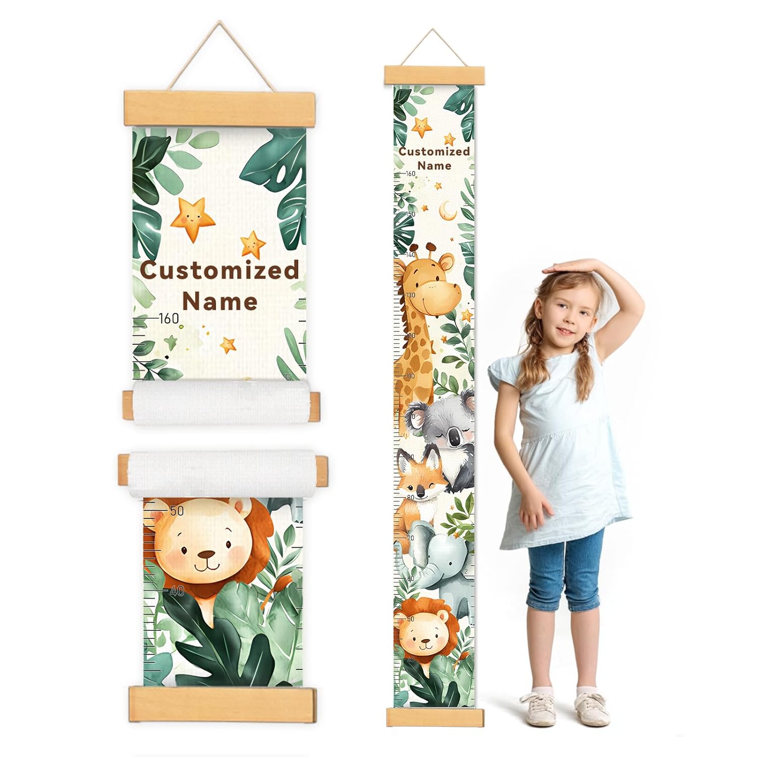 Personalized Name Baby Growth Height Chart Handing Ruler Wall Decor for Kids, Animals Canvas Removable Height Growth Chart, Nursery Decor, Toddler Kid Room Decoration, Hangable