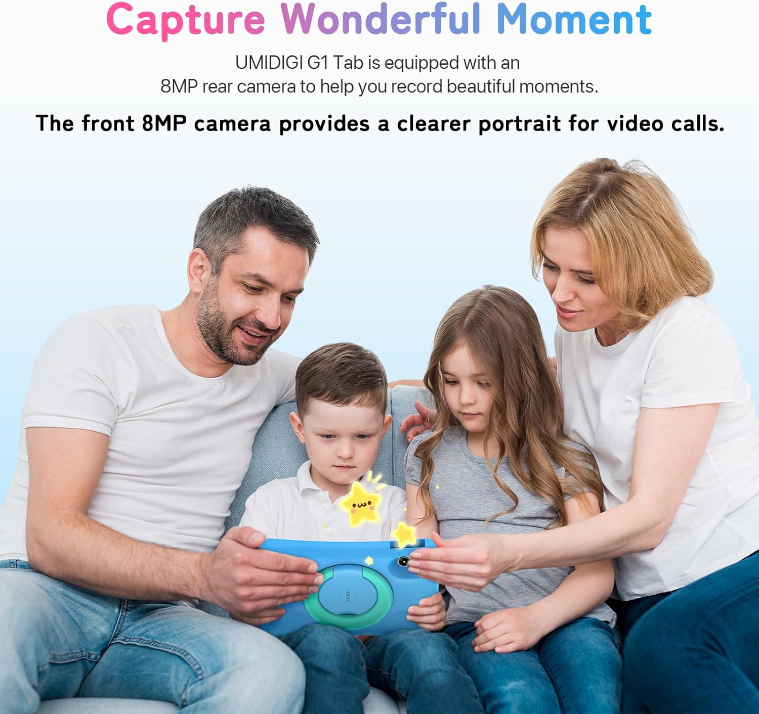 - 【Dual Camera + Large-Capacity Battery】G1 Tab with excellent 8MP rear camera + 8MP front camera, easy to record daily life and enhance parent-child interaction; 6000mAh large-capacity battery and intelligent power saving tech, with 550 hours of standby time, 52 hours of talk time and 15 hours of playtime, you can travel and hike with confidence.