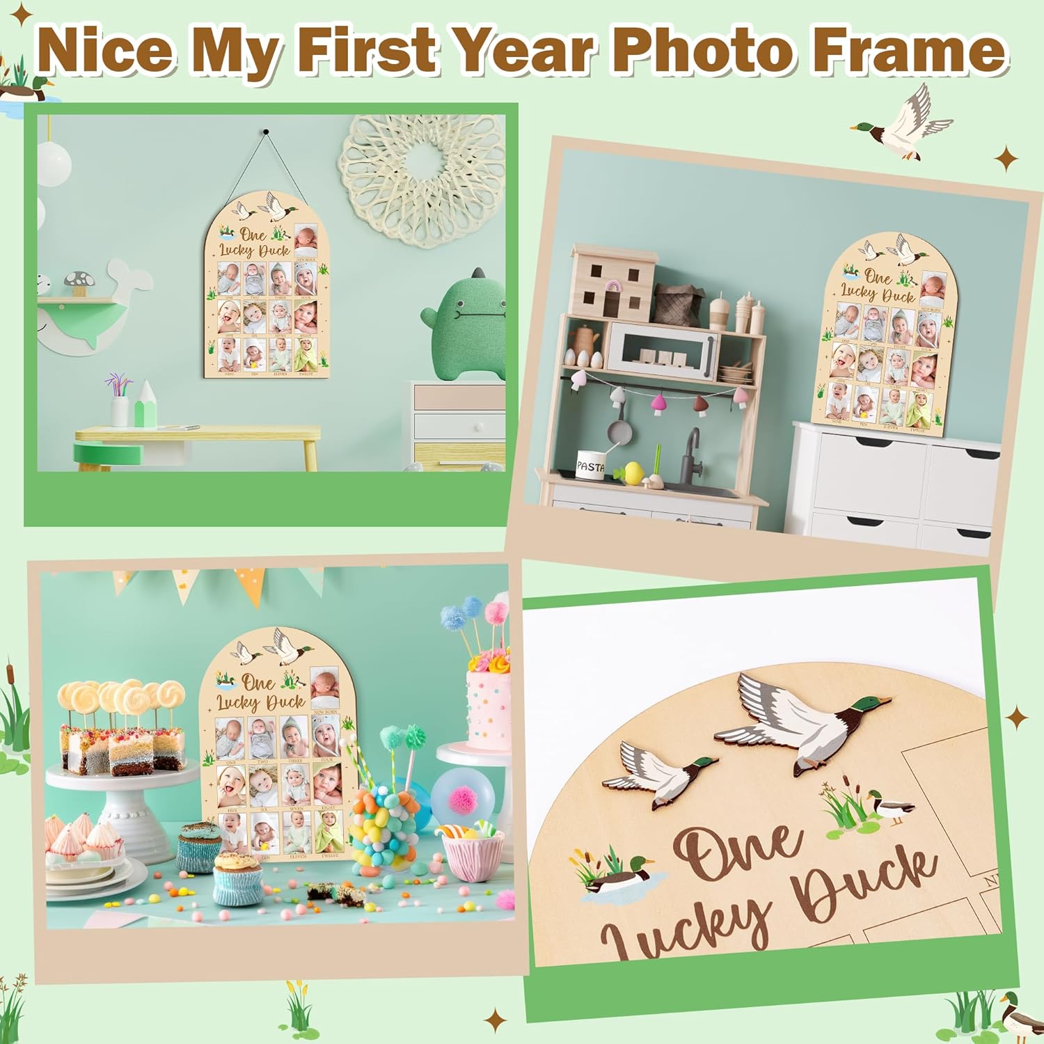 - 3D Mallard Duck Design: Document baby's precious first year with our adorable mallard duck wooden photo display board! Made from premium thick wood for lasting durability. Perfect as a nursery decor or as the highlight of your baby's first birthday celebration, this cute milestone board turns fleeting moments into timeless memories you'll treasure forever.