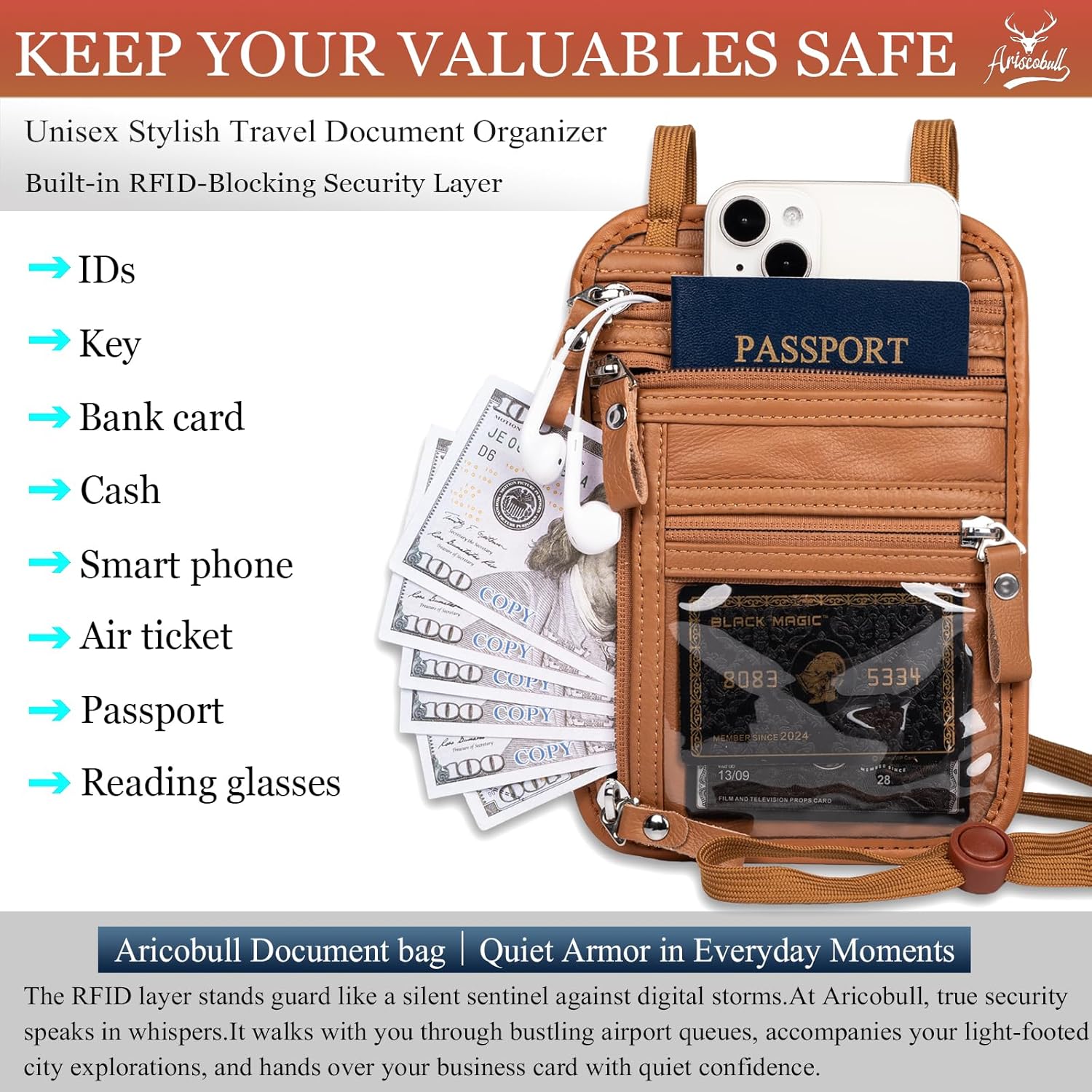 - Discreet Anti-Theft Design – Our Ariscobull Neck Wallet Makes It Super Easy To Add Or Remove Items, Keep Valuables Hidden Under Clothing, Perfect For Travel And Crowded Areas.