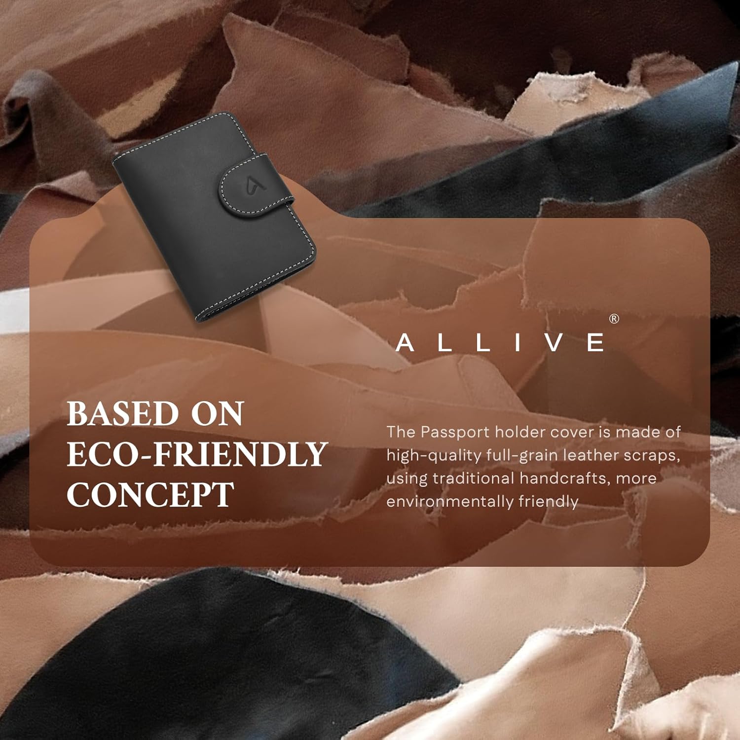 ALLIVE Passport Holder for Travel, Genuine Leather Passport Holder with AirTag Hidden Pocket, Rfid Blocking Passport Cover Travel Wallet for Women Men, Airport Essentials Gift (Black)