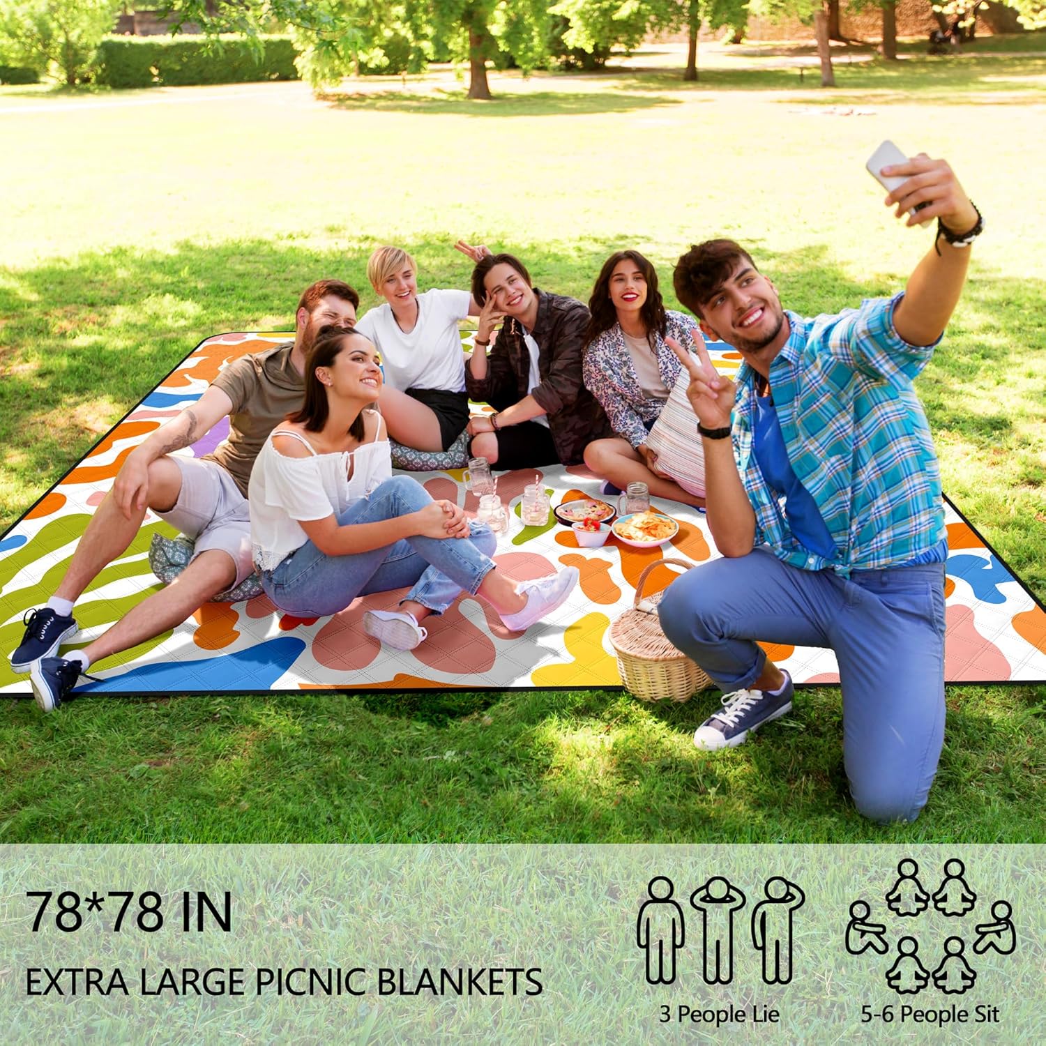 - Extra Large for the Whole Family: This extra large picnic blanket measures 79”x79”, providing plenty of room for 4-6 adults. Whether you're at a beach, park, camping trip, hiking spot, festival, or stadium event, this oversized beach blanket offers the perfect space for lounging.