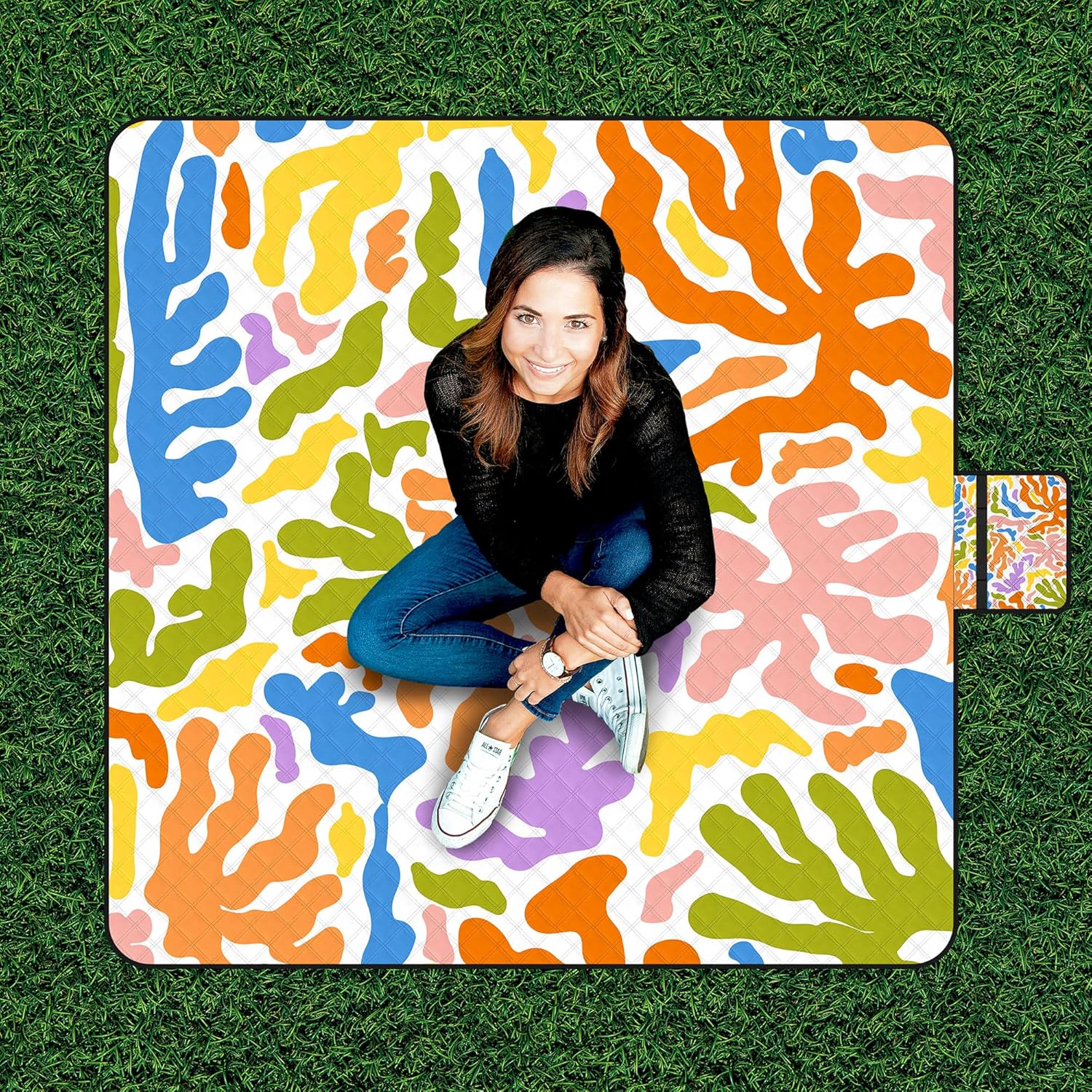 - Lightweight and portable: Our foldable picnic blankets easily fold into a compact travel beach mat with a built-in carry handle, making it ultra-portable for RV camping, road trips, and family picnics. It fits in strollers, backpacks, and trunks for effortless transport.
