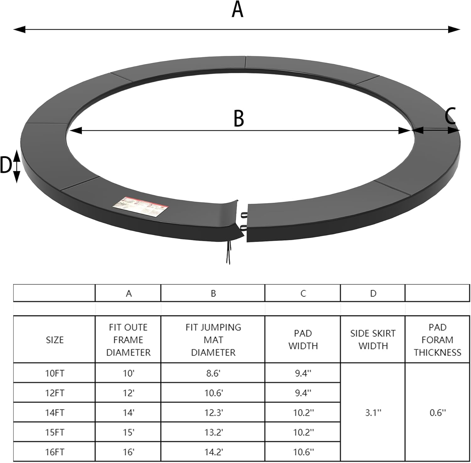 Trampoline Pad 10ft 12ft 14ft 15ft 16ft Trampoline Replacement Safety Pad, Waterproof and Tear-Resistant Safety Spring Cover Round Frame Pad, Trampoline Pad Replacement