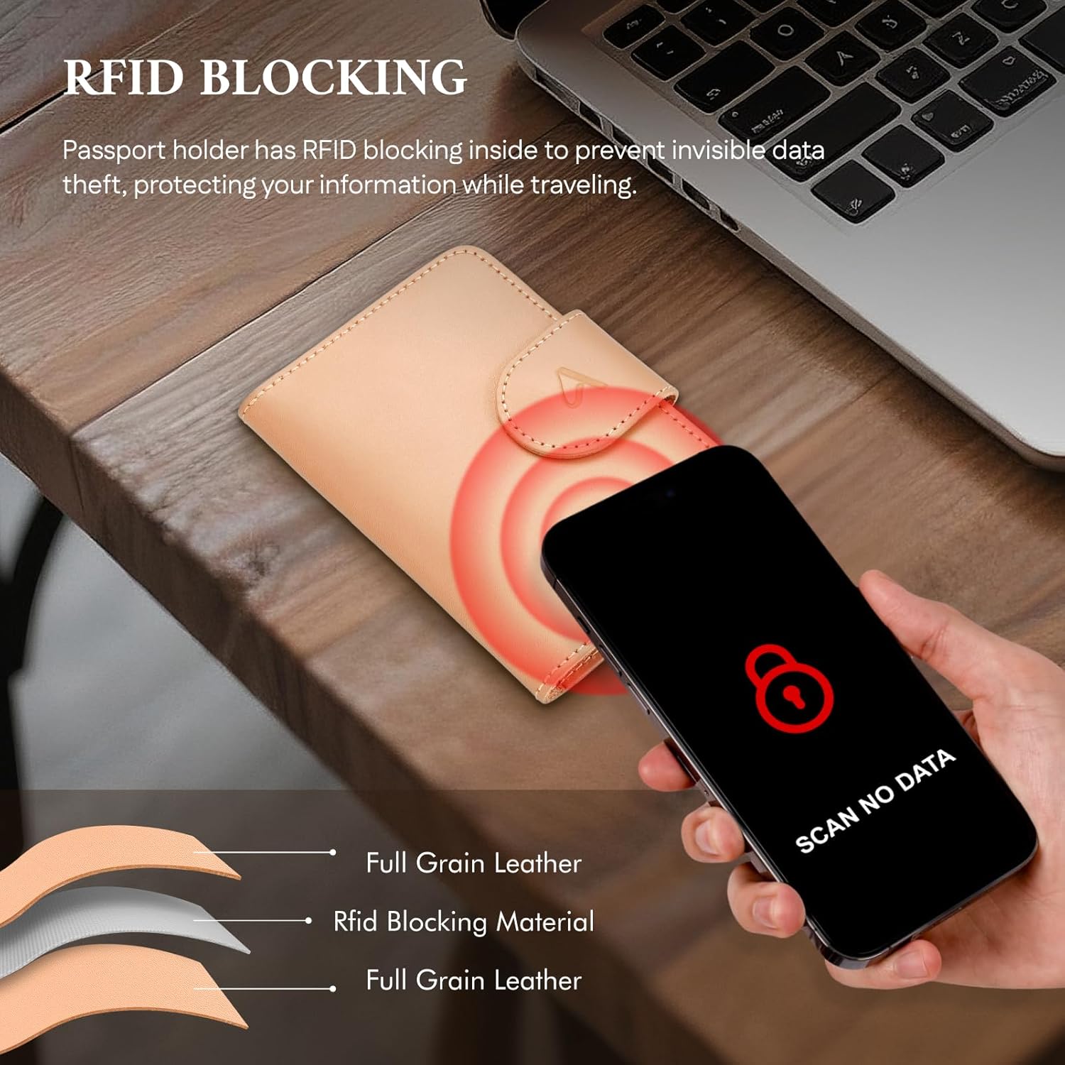 - RFID Blocking Passport Holder:Our Passport Holder is travel-ready With features like RFID protection, you can be protected from electronic theft. This passport Holder is perfect for frequent travelers who want to travel abroad with security in mind