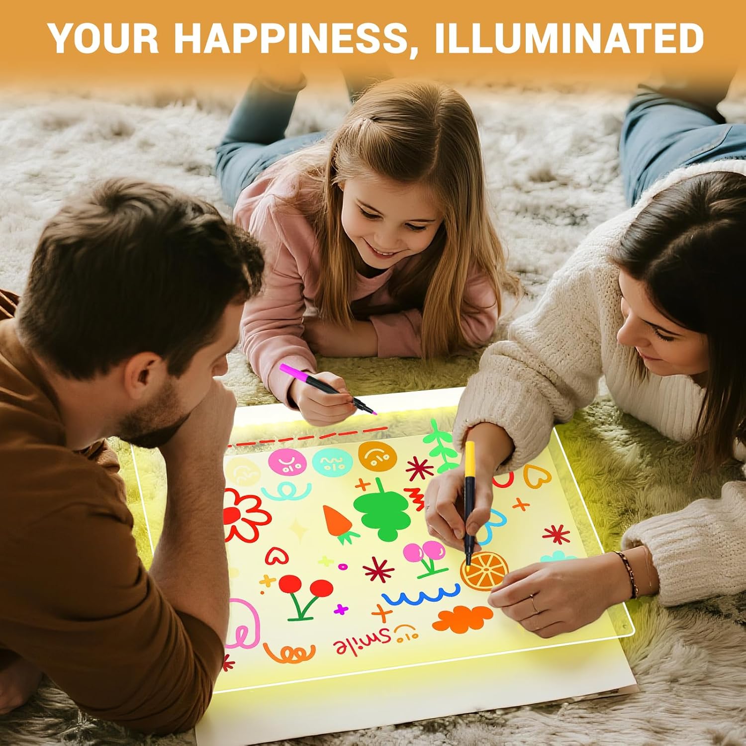 - LED Drawing Board with Smart Control and Music Sync: Take control of your board’s brightness, color, and special effects through the APP or included remote control. Elevate movie nights, parties, or gaming marathons with the innovative music sync feature. As your tunes play, the board’s lighting will pulse and shift in time with the audio, creating an immersive atmosphere that captivates everyone in the room.