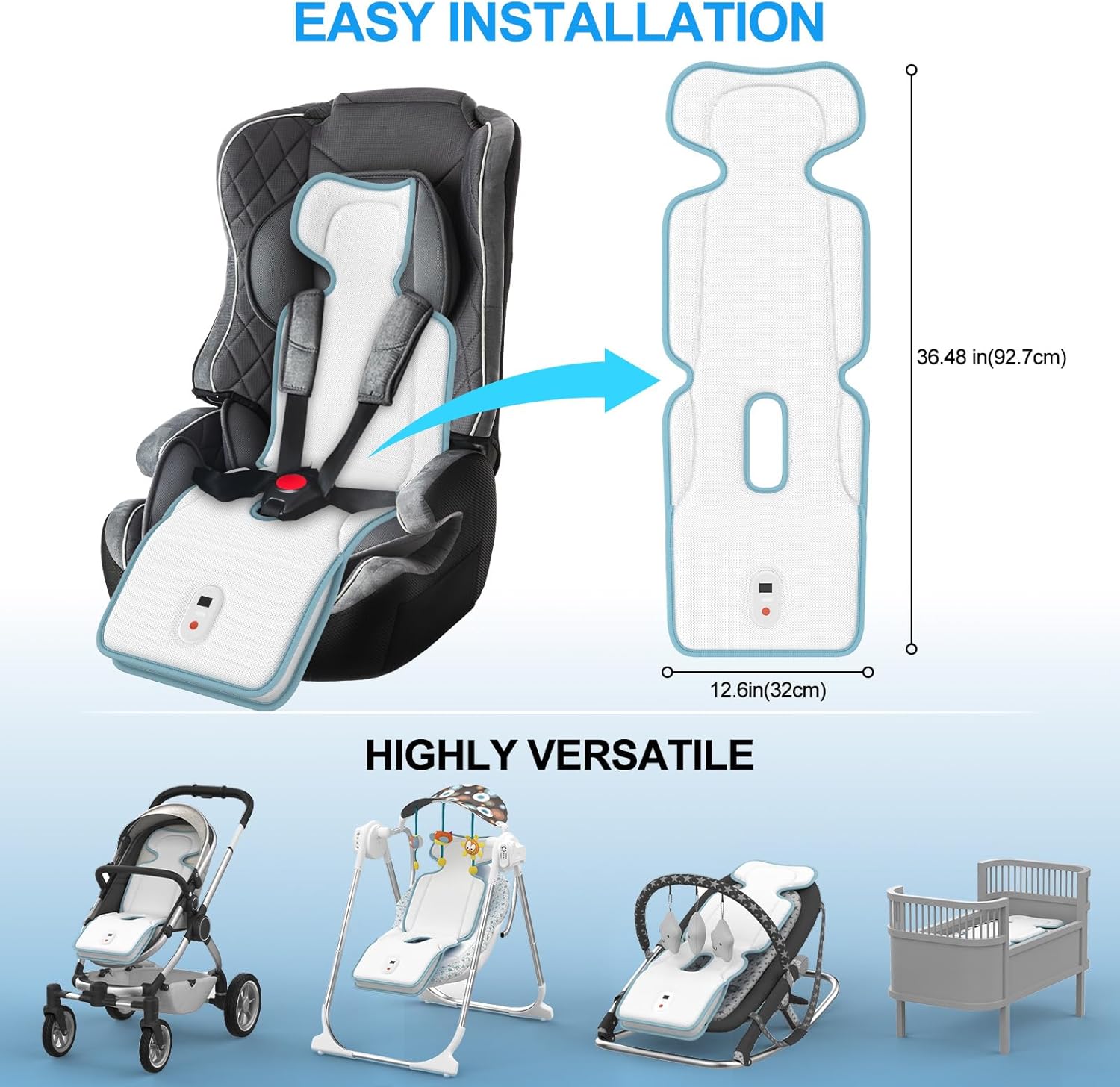 - 【3 Adjustable Fan Speeds&Whole-Body Cool】 Equipped with dual brushless turbo blowers, our car seat cooling pad offers 3 airflow settings—from soft breeze to powerful airflow,so you can customize comfort based on the weather or your baby’s needs. Featuring whole-body coverage with whisper-quiet airflow, it's perfect for naps on the go