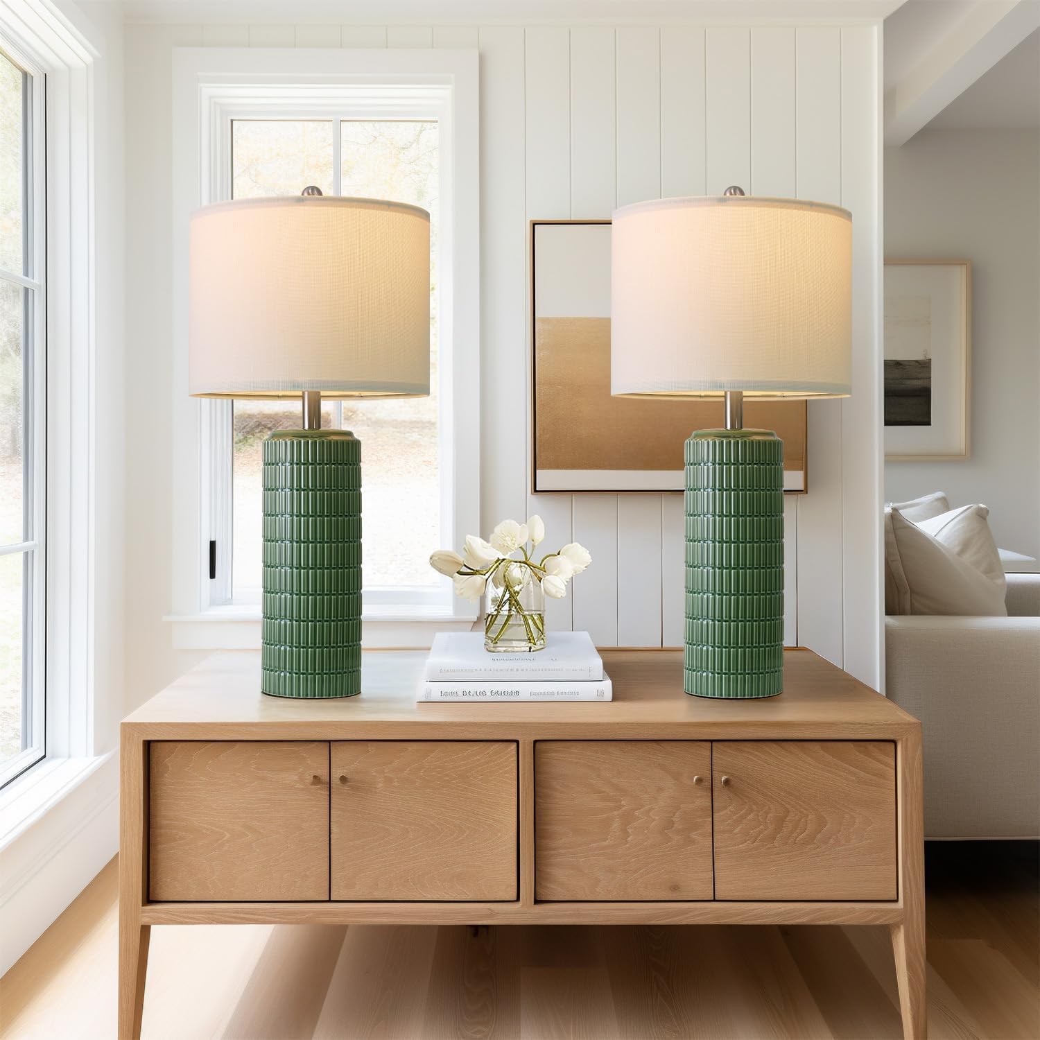 PoKat 27.5" Dark Green Ceramic Table Lamps for Living Room, Farmhouse Table Lamps Set of 2 for Bedroom Night Stands, Modern Bedside Lamps for End Side Table, Vintage Nightstand Decor Lamps Home Office