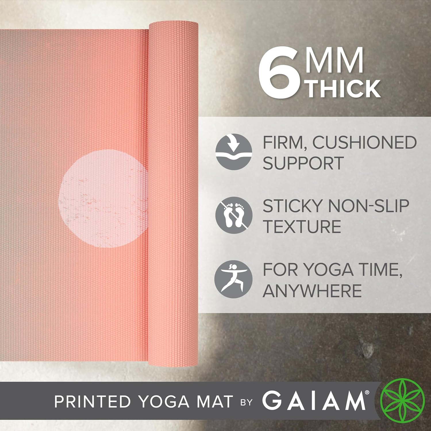 Gaiam Yoga Mat - Premium 6mm Print Extra Thick Non Slip Exercise & Fitness Mat for All Types of Yoga, Pilates & Floor Workouts (68"L x 24"W x 6mm Thick)