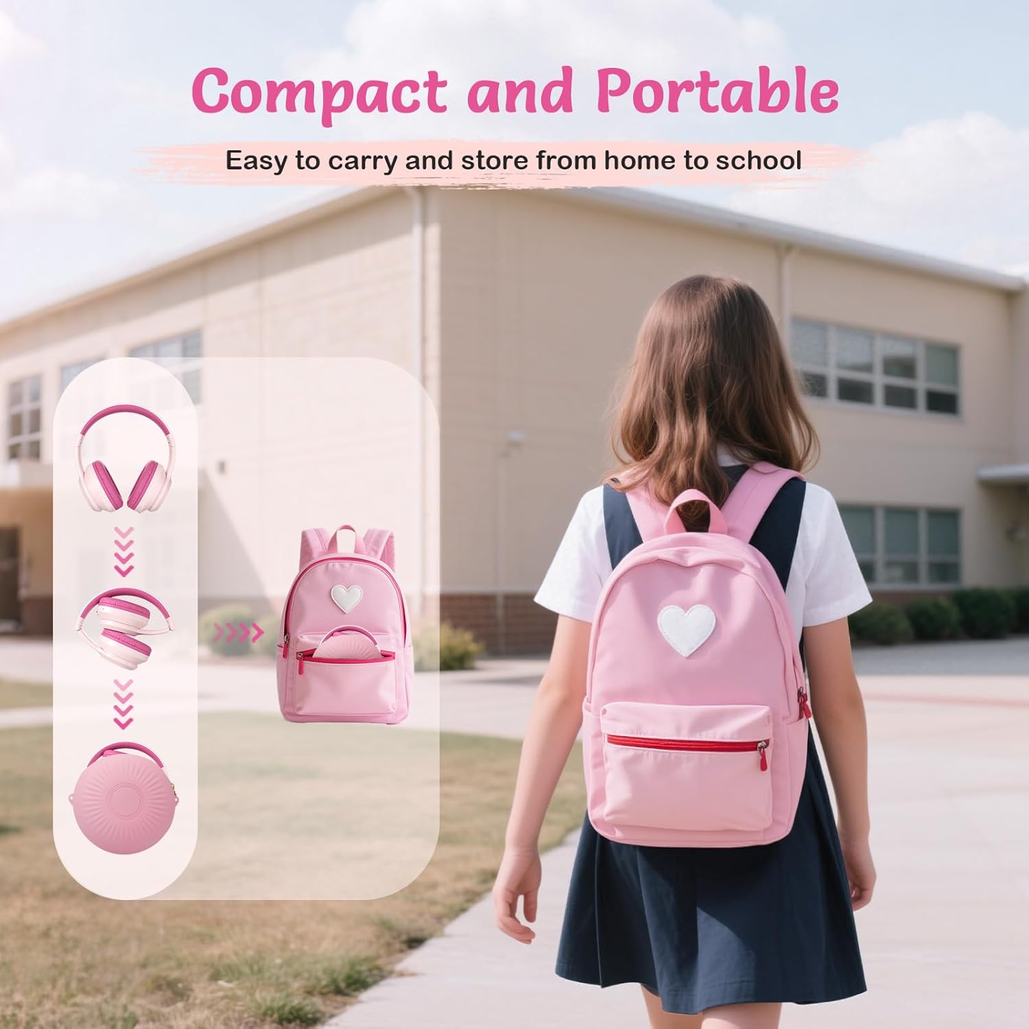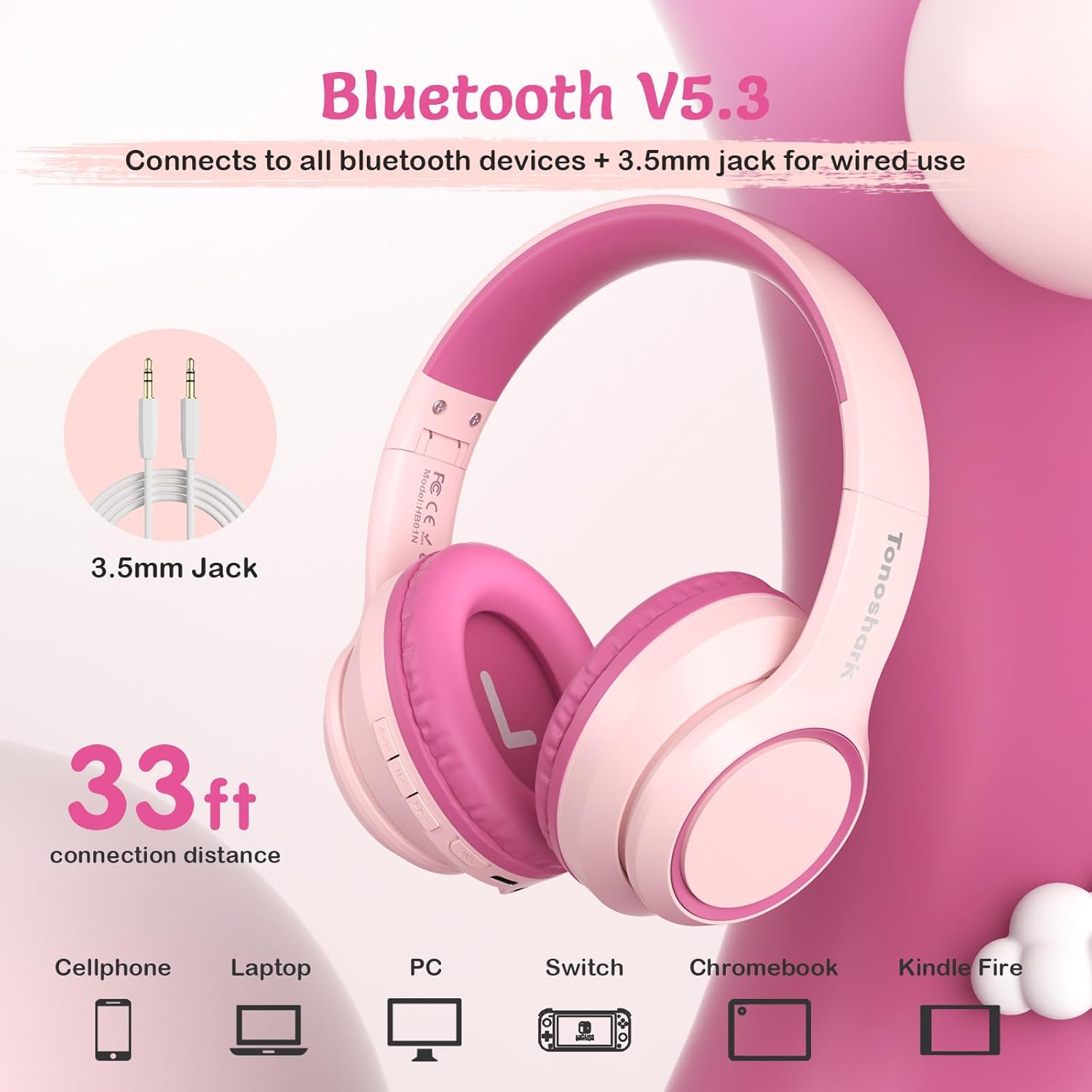 Active Noise Cancelling Headphones for Kids, 60H Playtime, Wireless Bluetooth Over-Ear Blue Headset Built-in Microphone for Home/School/Travel/Party - Includes Portable Case (Pink)