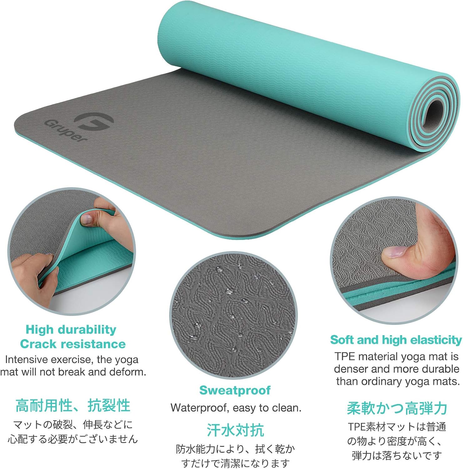 - NEW ECO FRIENDLY MATERIAL: The upgraded Gruper Yoga mat is made with premium friendly material. It costs more to make, but it is safer and more soft than traditional non-green PVC and EVA yoga mats.The exercise mats are suitable for many forms of Yoga, Pilates and fitness.