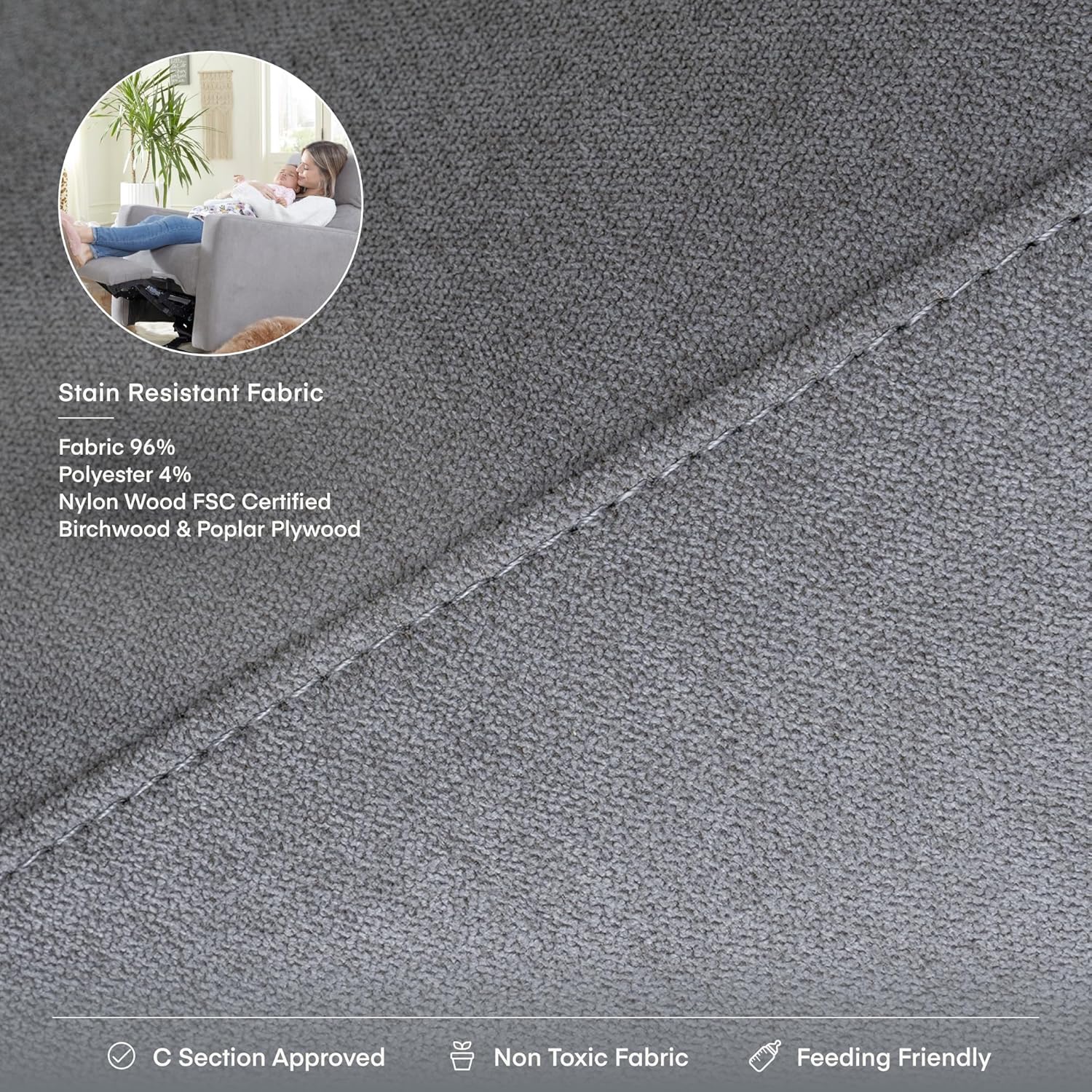 - SPILL-PROOF FABRIC & SUPERIOR CONSTRUCTION: Stain resistant and liquid repellent Live-Smart️ materials. Built with a birchwood and poplar plywood frame and offers extra padded cushions and a warranty on all moving parts, ensuring that the Glider stands the test of time and can grow with your family.