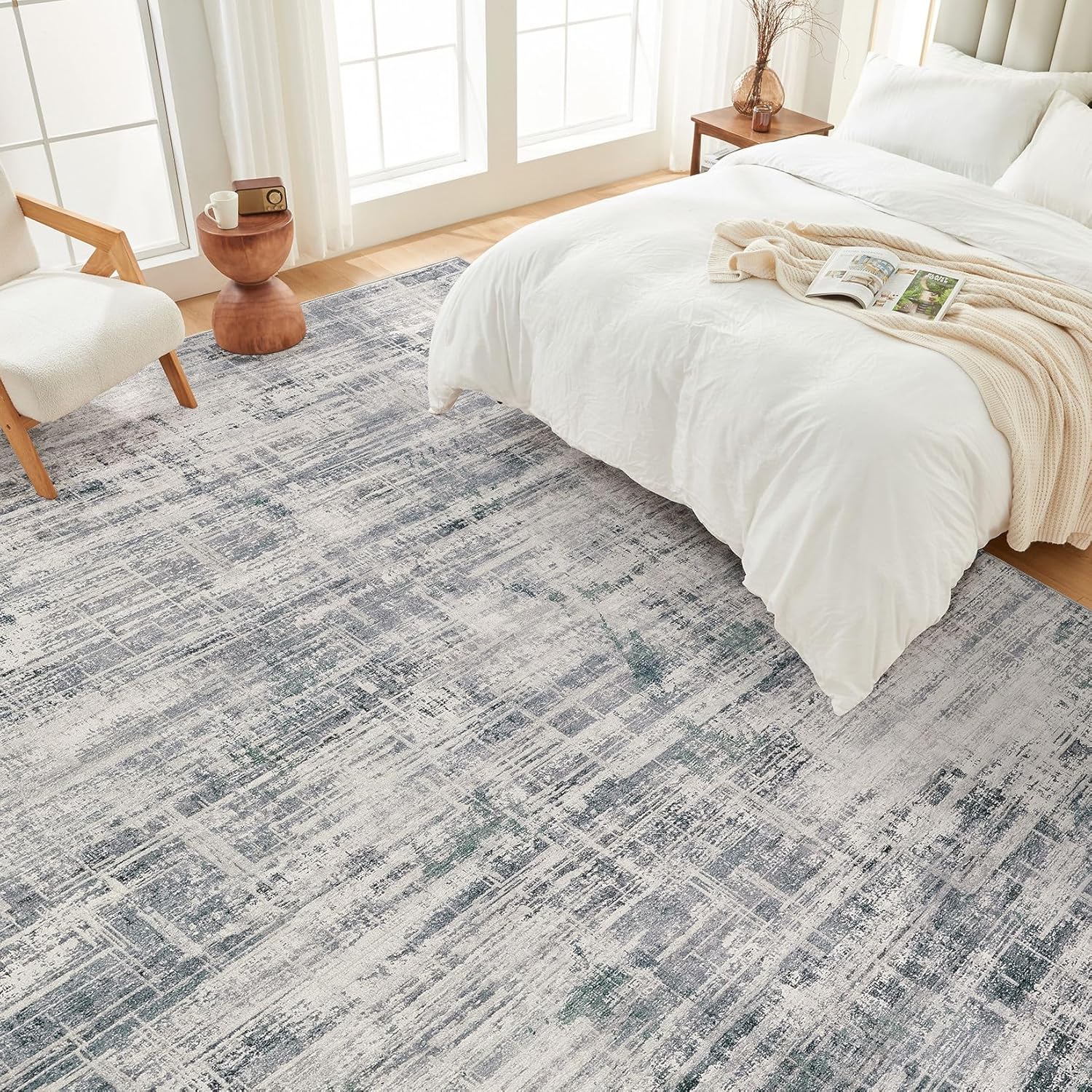 Area Rug for Living Room: 6x9 Washable Neutral Abstract Modern Soft Rugs Non Slip Indoor Floor Stain Resistant Large Carpet for Bedroom Dining Room Office Nursery - Gray