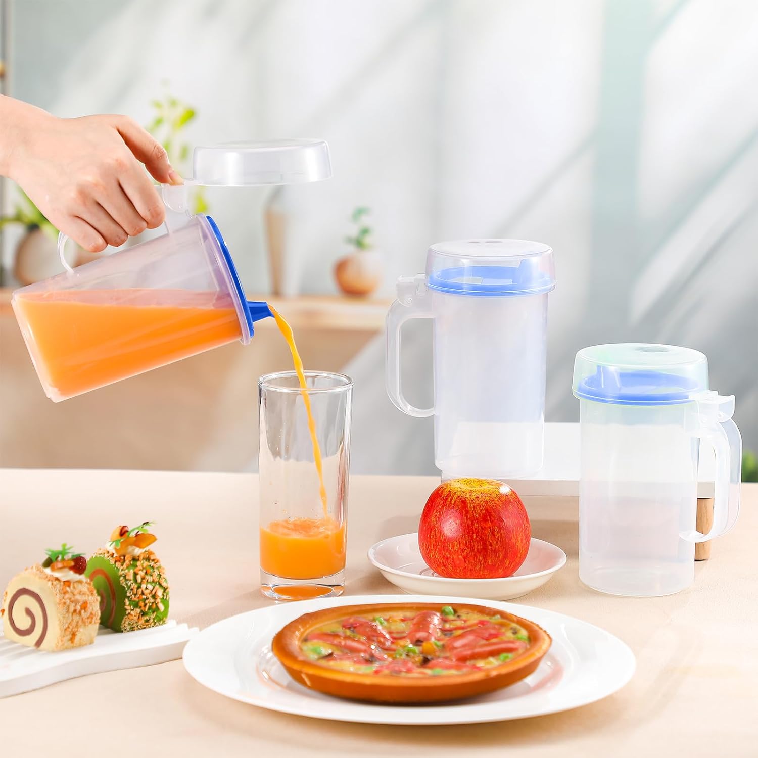 Newtay 6 Pack Early Learning Kids Easy Pouring Mini Pitchers Clear Plastic Pitcher with Lid and Handle Easy Pour Bottles 16 Oz. Jugs with Lids for Classroom Nursery Home (Blue)