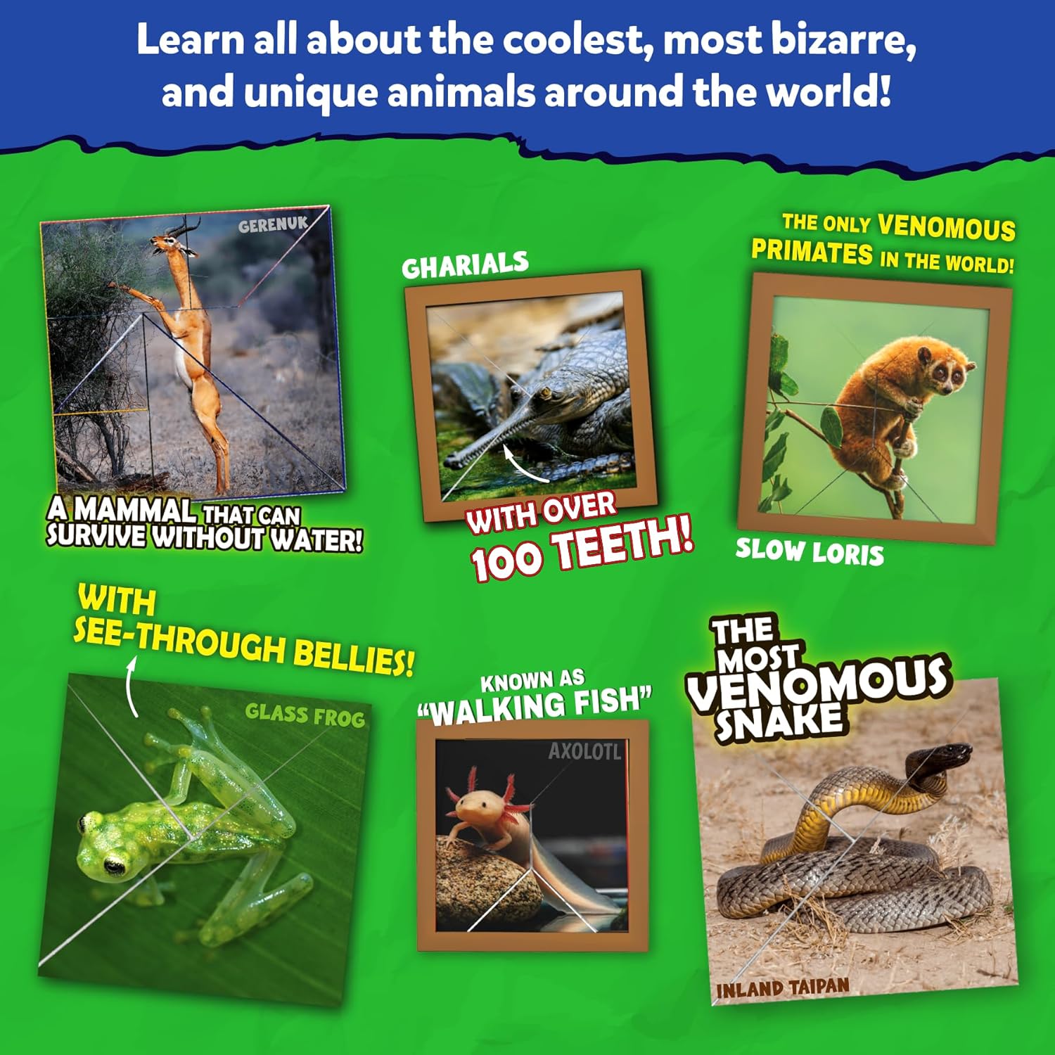 - SCRAPBOOKING KIT WITH ORIGAMI PUZZLES, STICKERS & FACTS: Create your own encyclopedia scrapbook and learn all about some of the coolest, most bizarre, and unique animals around the world! Solve and match 48 origami puzzles, place them in their pockets, decorate with fun stickers, and read fascinating facts!