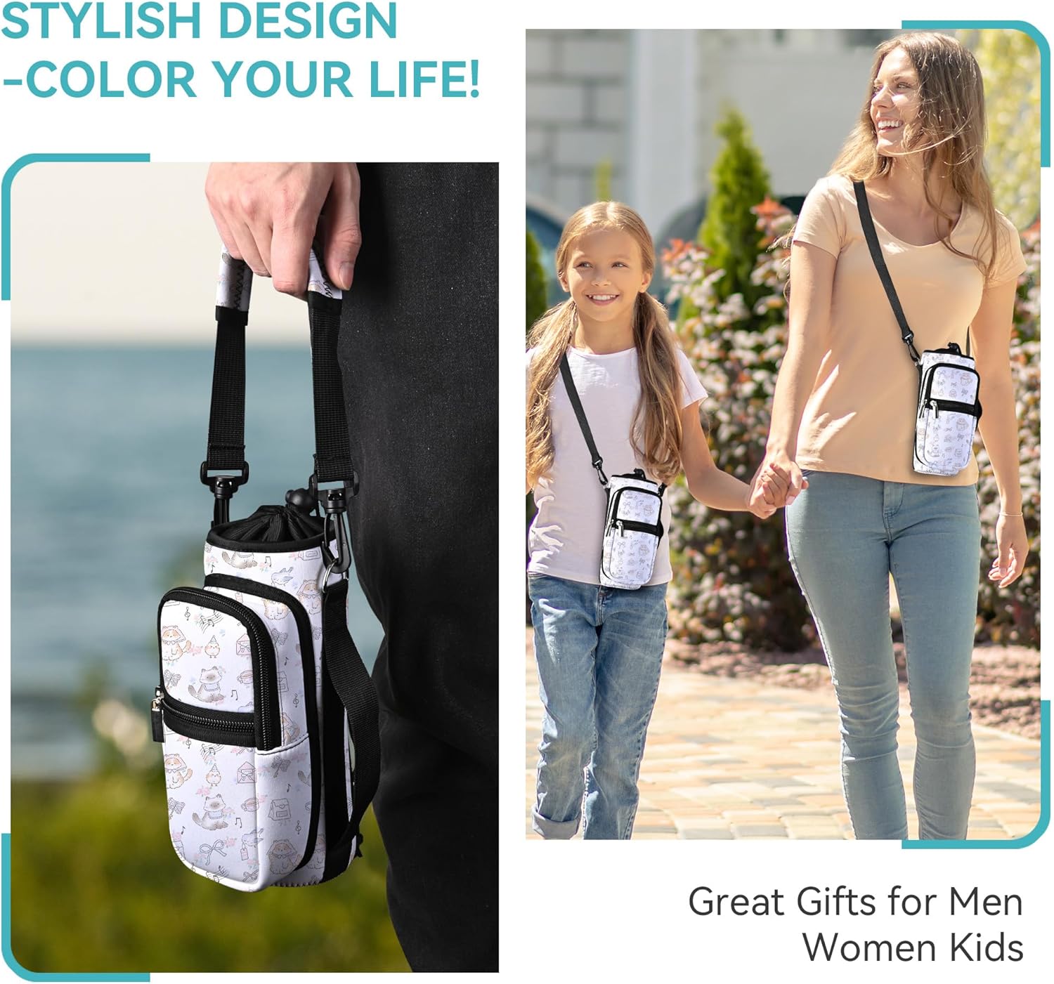 - GREAT FOR TEENS & ADULTS: Both adults and Kids can find great use in this AUPET water bottle carrier holder. Use it for walking,running,gym,cycling,hiking and more.with two zipper pockets for smartphone,cash,card keys and other small items.with the adjustable shoulder strap and the carring strap,it will fits all body types,you can wear over the shoulder, cross chest as a sling bag or just hand carring.<br/>