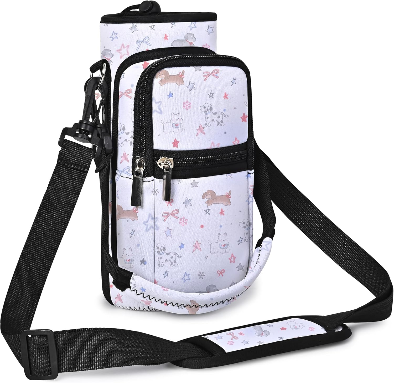 - GREAT FOR TEENS & ADULTS: Both adults and Kids can find great use in this AUPET water bottle carrier holder. Use it for walking,running,gym,cycling,hiking and more.with two zipper pockets for smartphone,cash,card keys and other small items.with the adjustable shoulder strap and the carring strap,it will fits all body types,you can wear over the shoulder, cross chest as a sling bag or just hand carring.<br/>