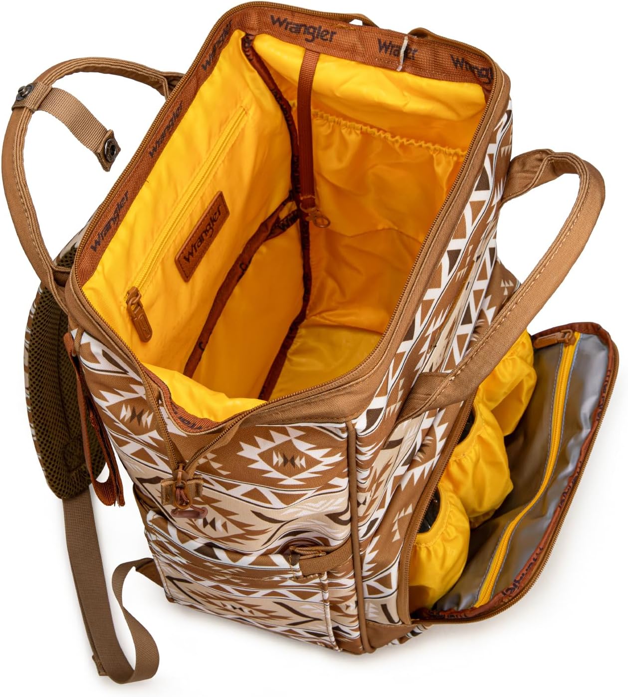 Wrangler Aztec Backpack Multifunction Baby Travel Bag with Changing Pad, Stroller Straps and Pacifier Case WG2204-91103TN