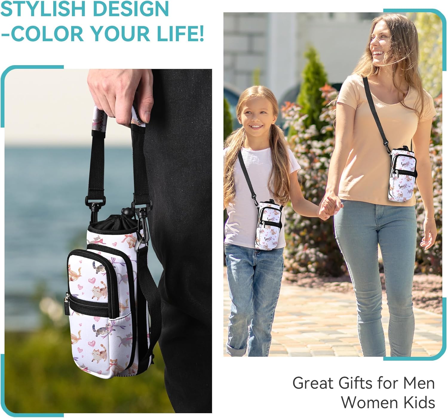 • AVAILABLE IN FOUR SIZES:Our AUPET water bottle crossbody bags has four sizes for you to choose,25oz/32oz/40oz/64oz,please refer to the picture to choose the right size<br/>