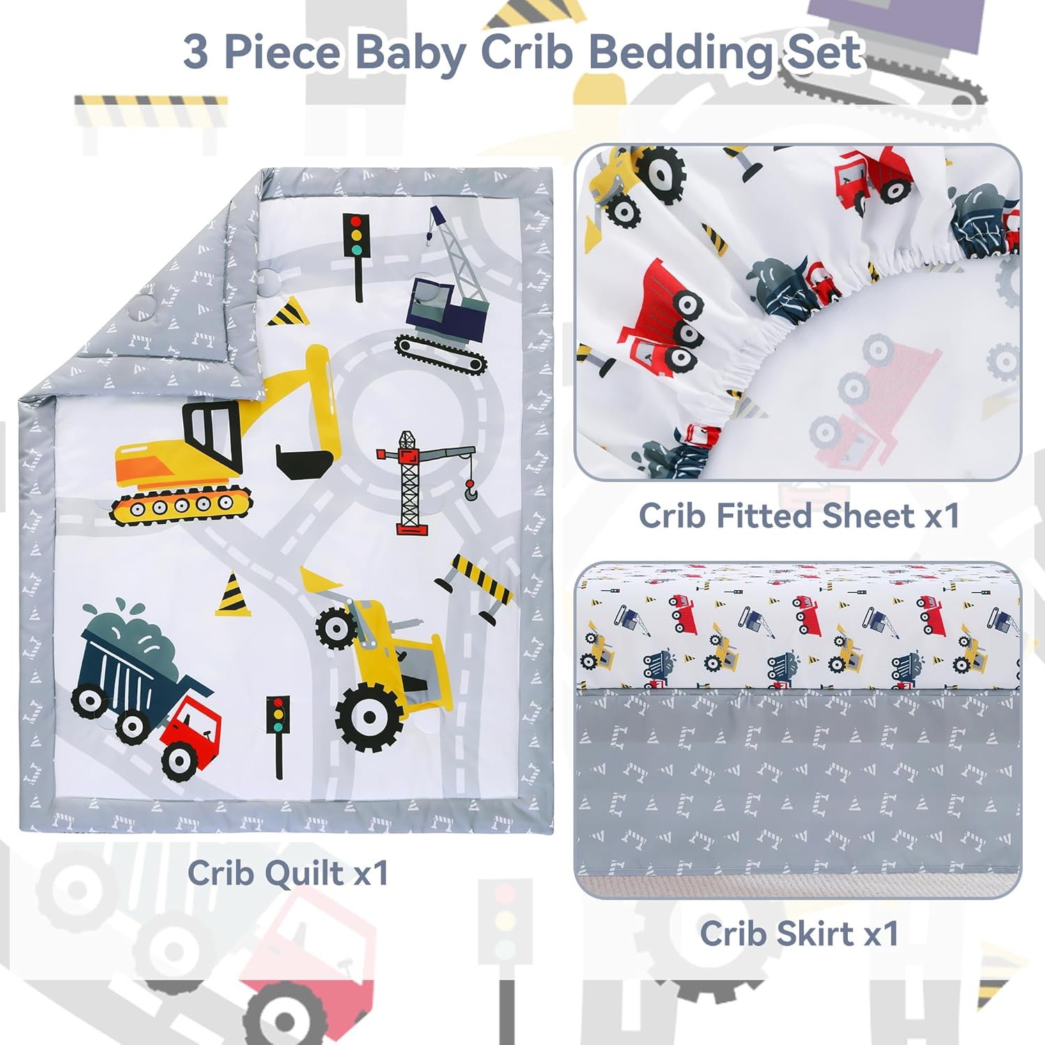 - Complete Set: This 3-piece set includes a beautifully crafted baby quilt, a fitted baby sheet, and a matching bed skirt, offering a stylish and coordinated look for your nursery.
