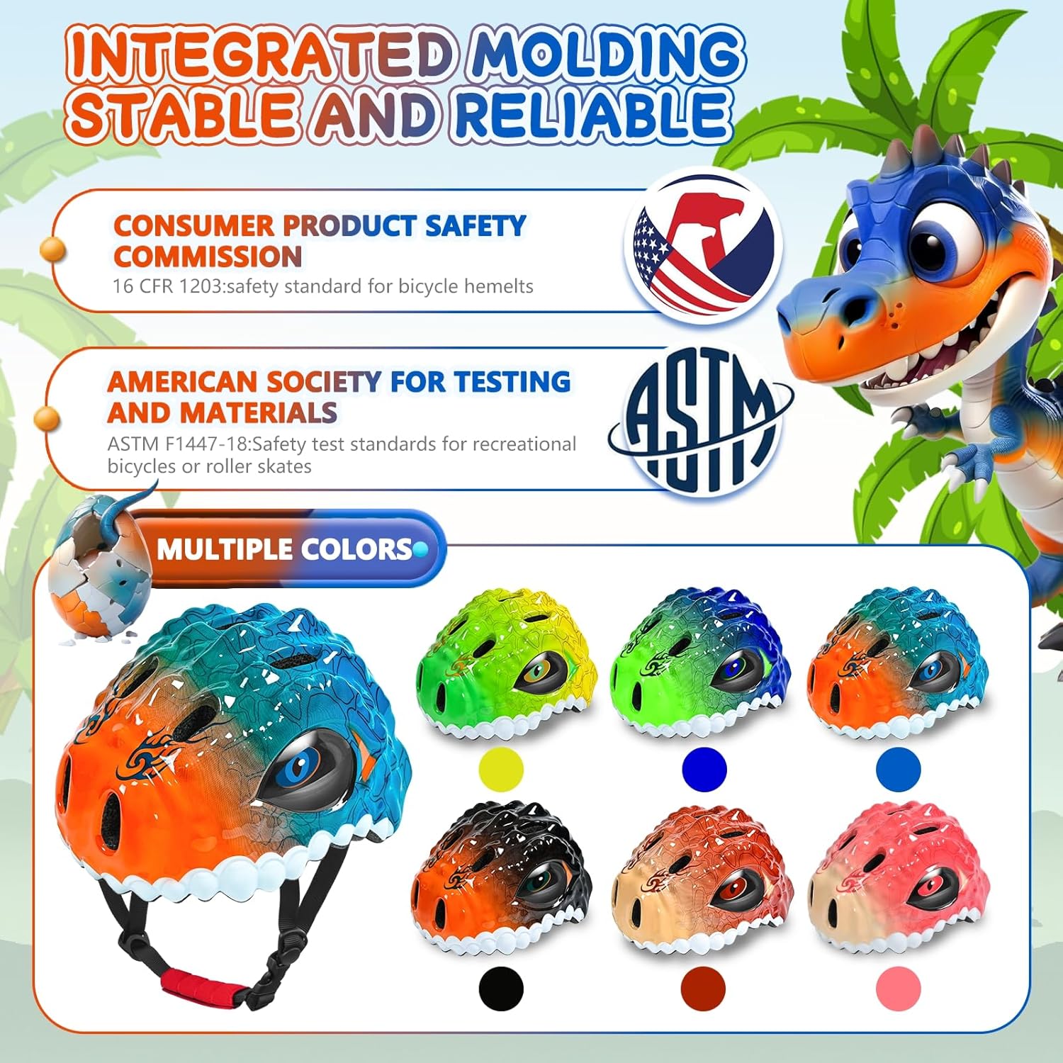 Toddler/Kids Bike Helmet Set for Boys Girls 3D Adjustable Kids Helmet Protective Gear Set Knee Elbow Wrist Pads and Multi-Sports Skateboard Scooter Cycling Roller Balance Bike
