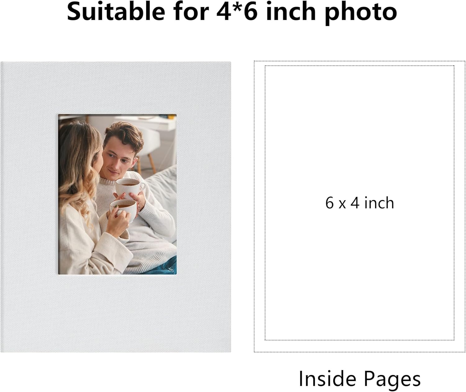 Small 4x6 Photo Album 100 Pockets Linen Cover with Front Window Portable Mini Picture Book for Family Travel Wedding and Memory Keepsake Organizer White