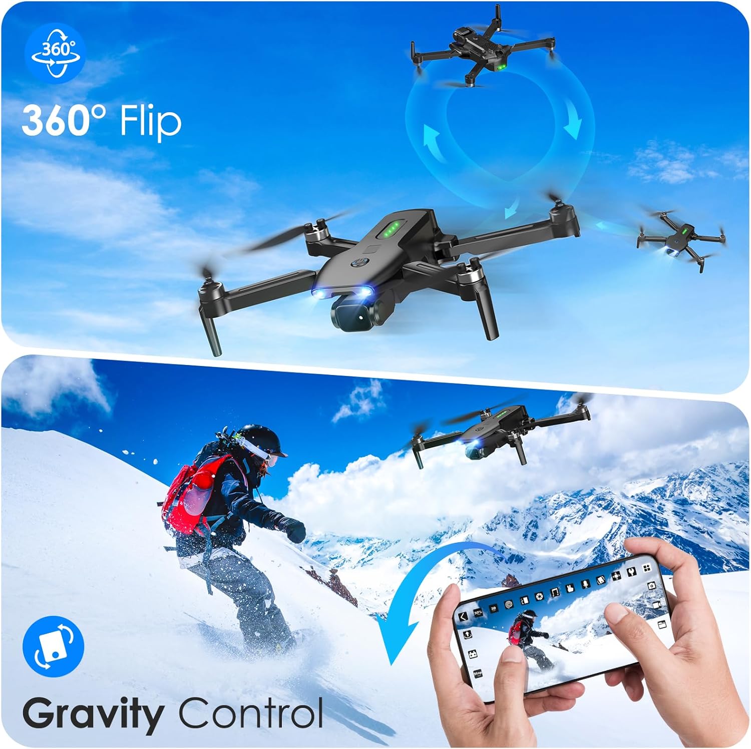 - Beginner-Friendly Flying Made Easy: Designed with one-key takeoff/landing, altitude hold, headless mode, and 3 adjustable speeds, this drone with camera is easy to control—perfect for beginners and ideal as drones for kids 8-12 and 10-15. Built-in low battery warning flashes lights to ensure timely landings and safer flying