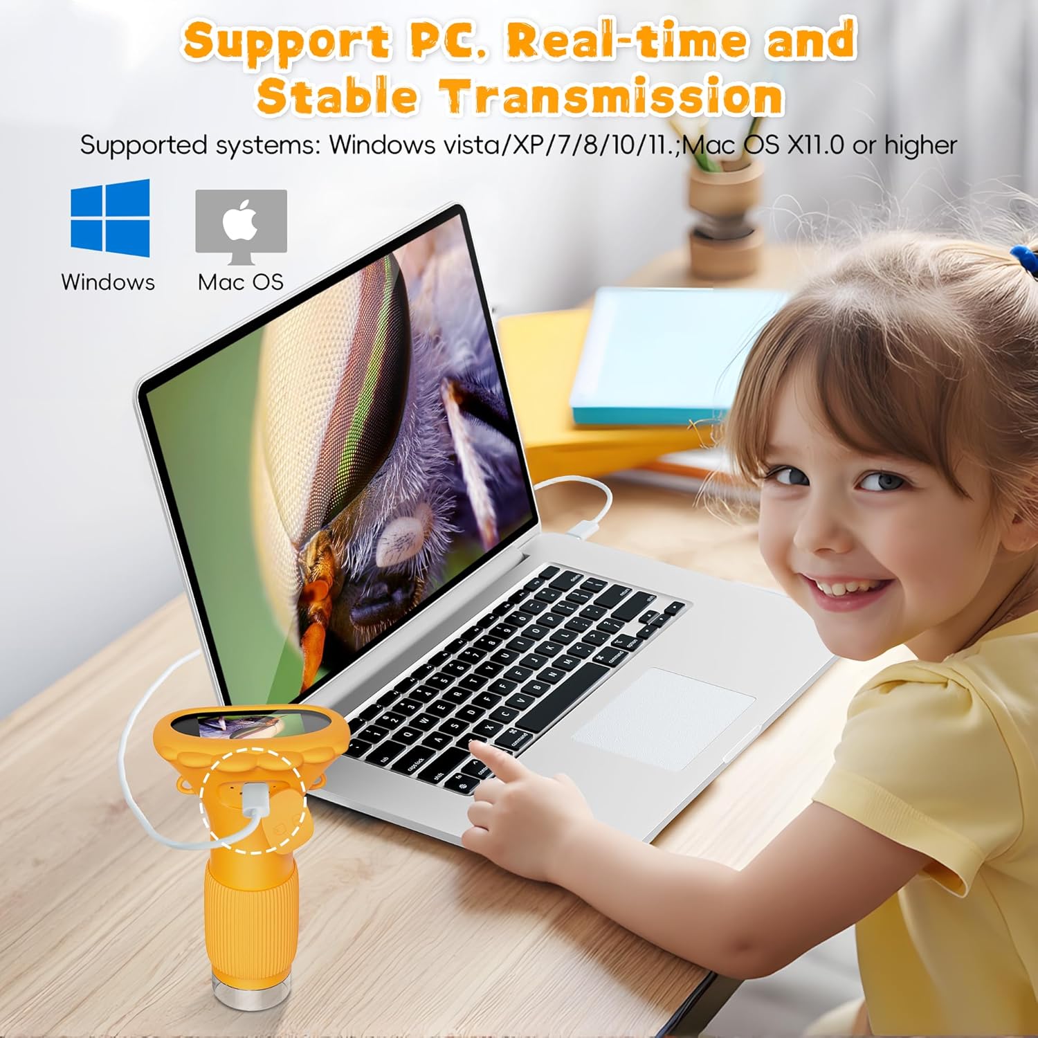 - PC Connection & fun sharing: The USB digital microscope can be connected to a computer via the included USB cable for large-screen real-time viewing, supporting Windows Vista/XP/7/8/10/11, MacOS X 11.0 or later; or save and share kids' explorations and discoveries with family and friends.