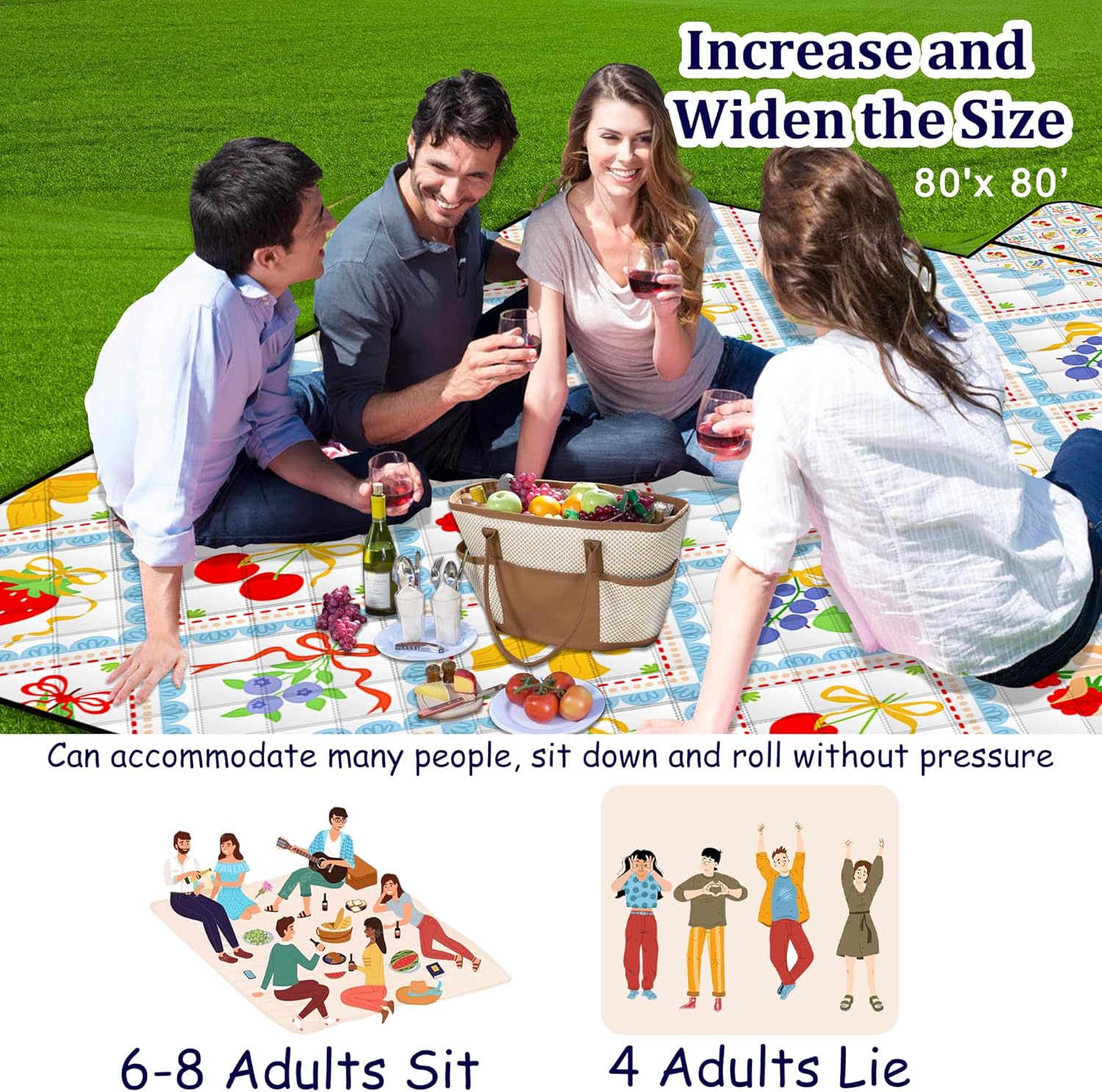 Extra Large Picnic Blanket Waterproof,80"x 80"Foldable Machine Washable Beach Blanket,Outdoor Blanket for 6-8 Adults,Suitable for Indoor Crawling,Park Beach,Camping,Hiking,Family Travel(Fruit)