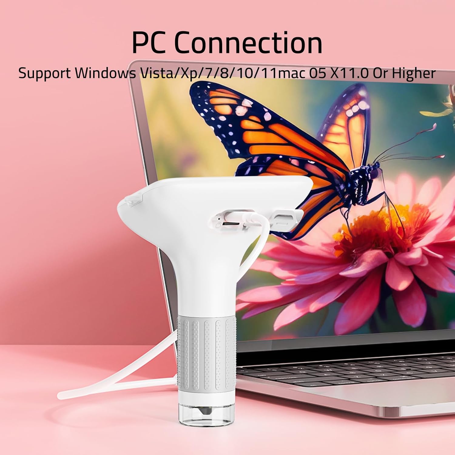 - 【PC Connection Supported】This pocket microscope is compatible with Windows and MacOS systems and can be connected to a computer via USB for larger-screen observation and analysis. Please refer to the user manual for specific connection instructions.