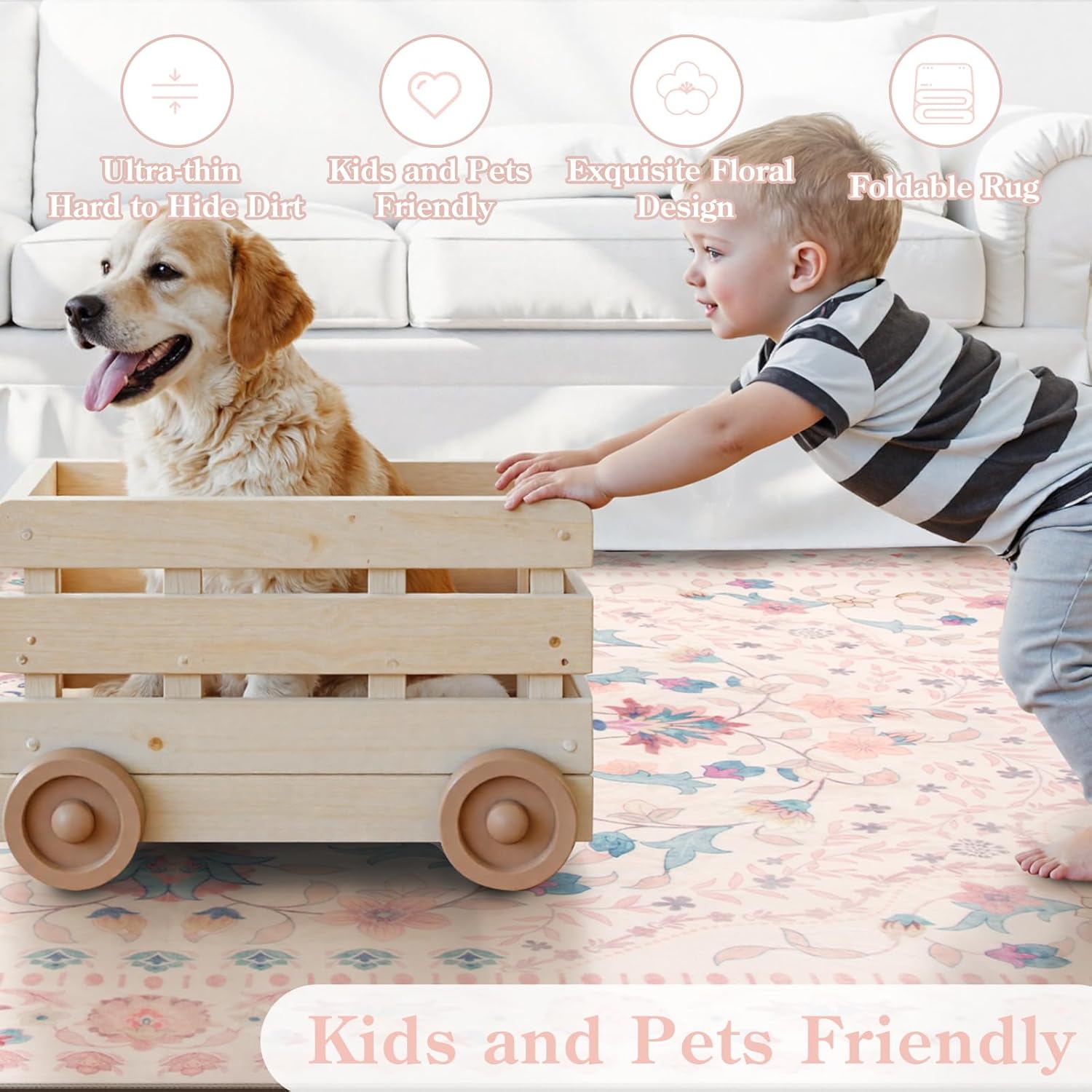- Kids & Pets Friendly: This soft rugs for nursey is suitable for baby and pets to play on. The kids room rug won't collect hair or dirt, and it can be easily washed to remove stains and keep the room carpet looking great