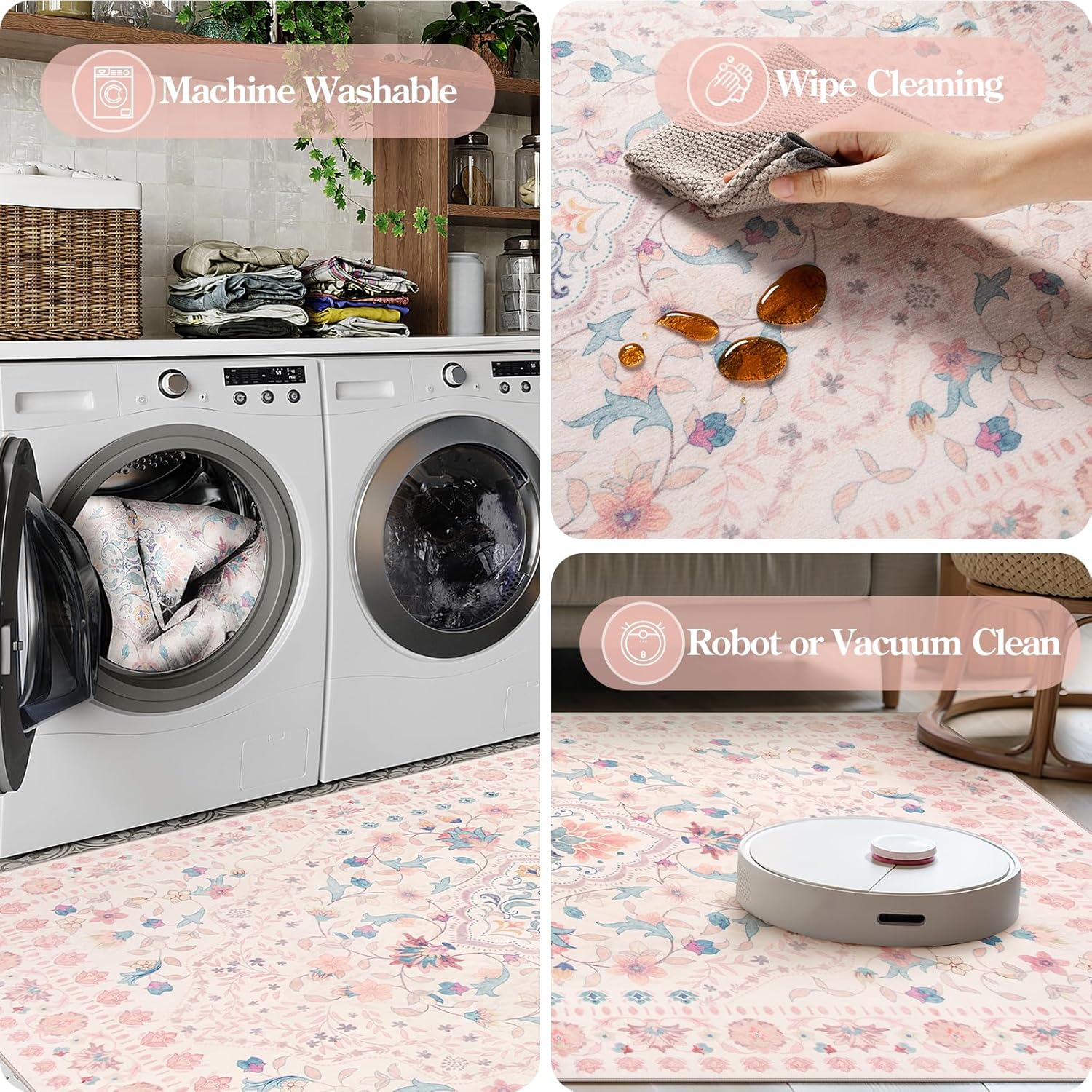 - Effortless Care: The washable living room rug is easy to deal with any accidents that happen on it, whether it's a spilled drink or pet paw prints, you can simply throw it in the washing machine or use a vacuum cleaner to remove the fine dirt
