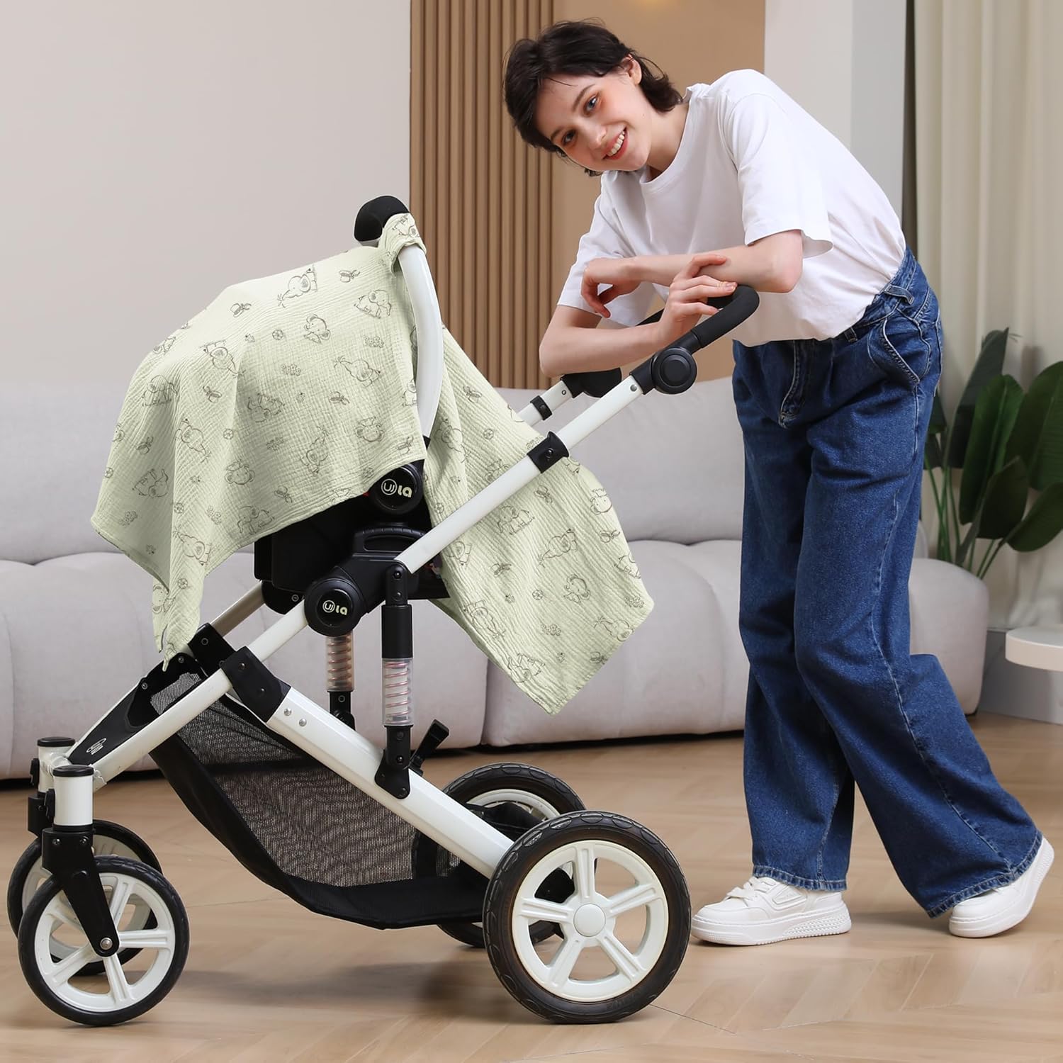 - FULL COVERAGE PROTECTION: Our MULTI-USE carseat canopy cover to keeps your baby from sunlight, summer heat and wind, on- looking stranger. The Cotton material also making sure your baby gets enough air and is not over-heating.