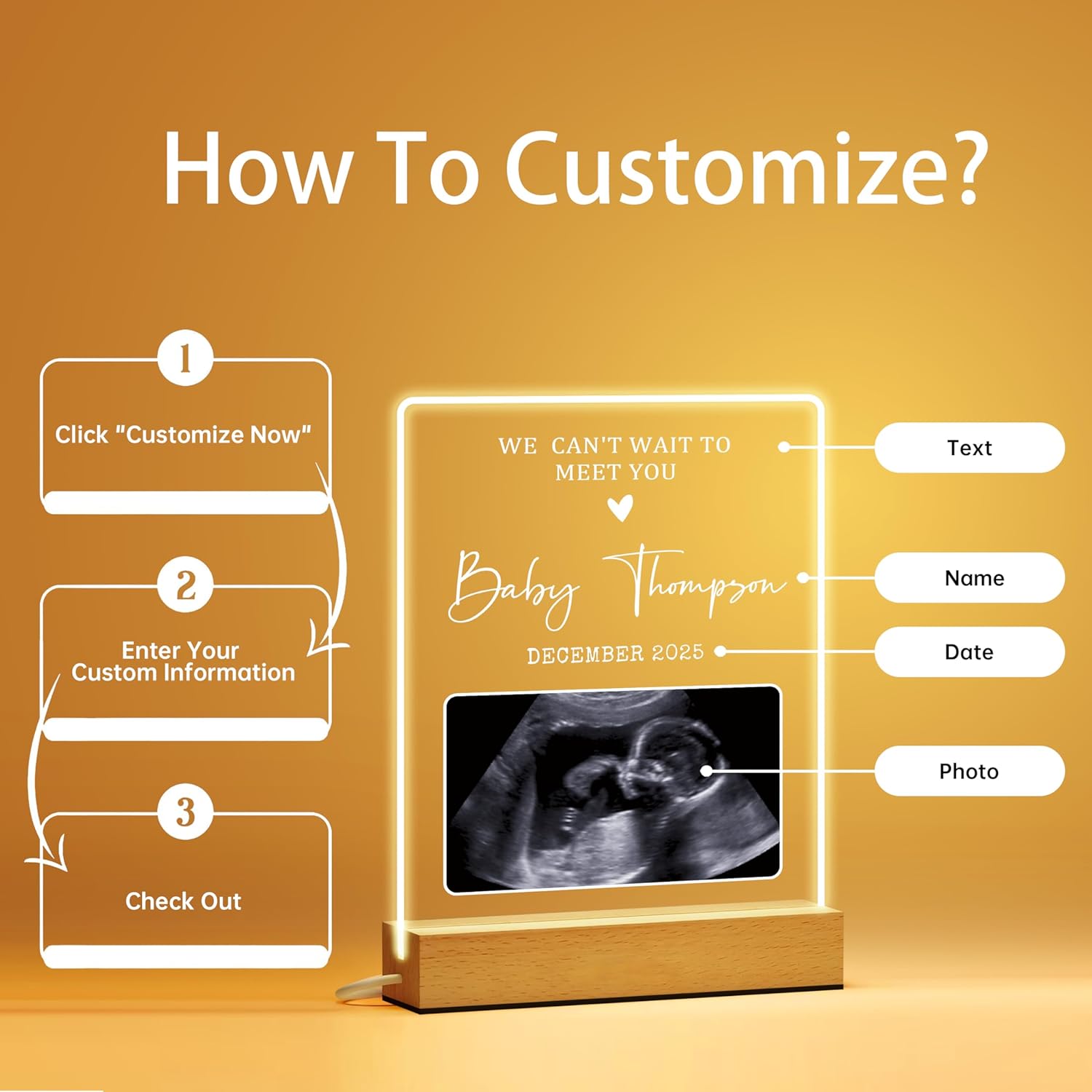 Personalized First Time Parents Gifts for Mom, Custom Ultrasound Picture Frame for Pregnant Announcement, Anniversary Mothers Day Gifts for Mom from Kids, Customized Acrylic Plaque Night Light