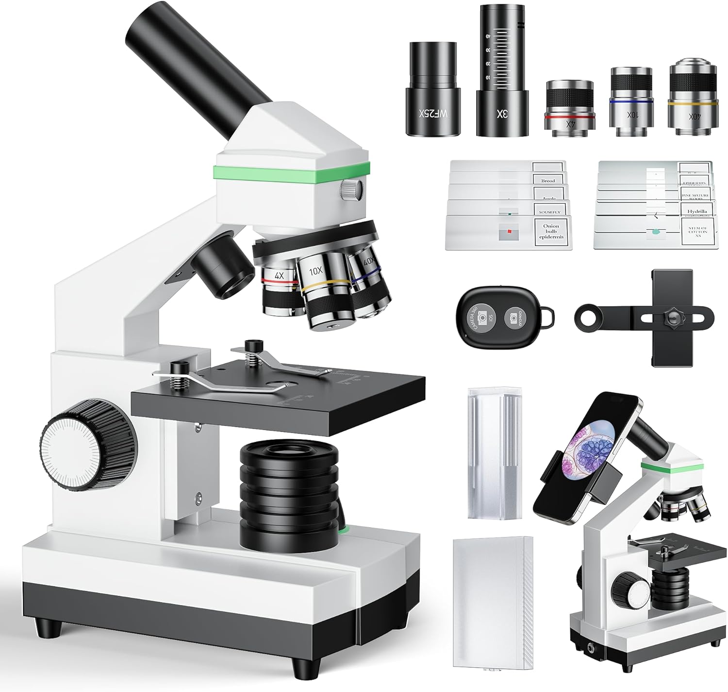 Microscope for Adults Professional, Compound Microscope for Kids 8-12, 100X-3000X High-Power Biological Microscope for Students, School Lab & Home Education, with Slides Set