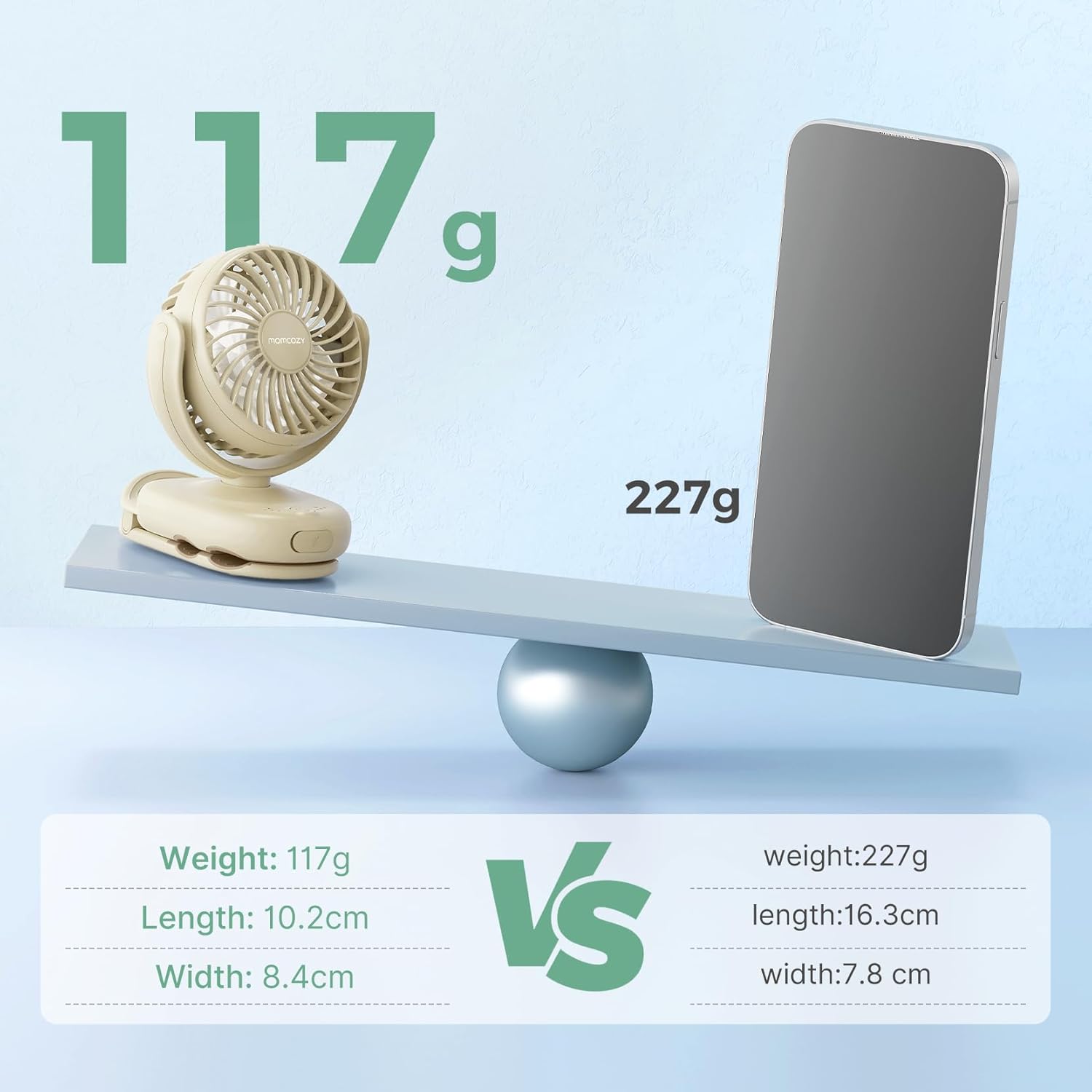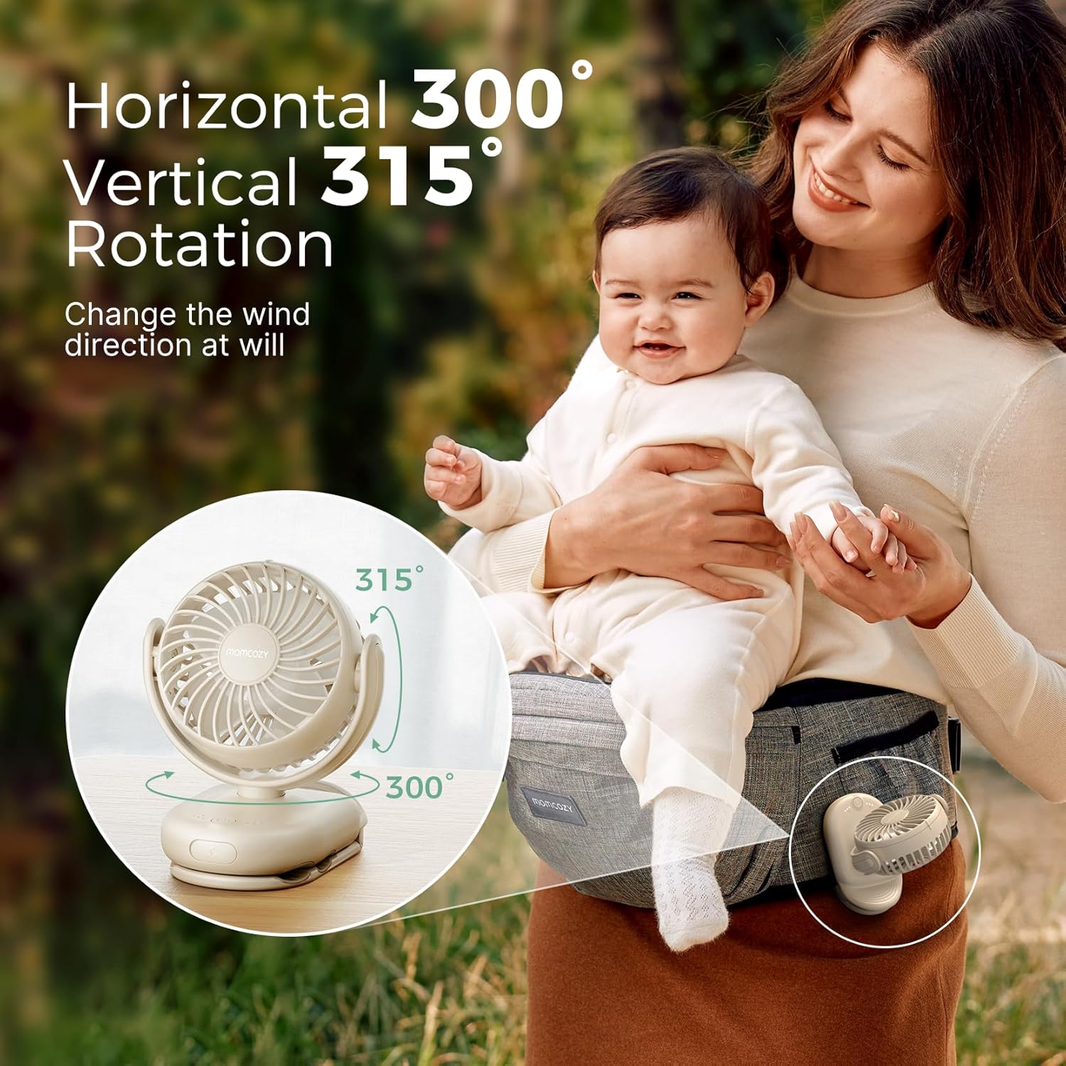 Momcozy Portable Fan with Clip | 4-Speed Mini-Fan for Carrier | Personal Fans Ultra Lighter 0.26lb | Gaps ≤4.5mm | Handheld Cooling | Rechargeable Rotate for Diaper Backpack/Stroller/Carrier/Chair