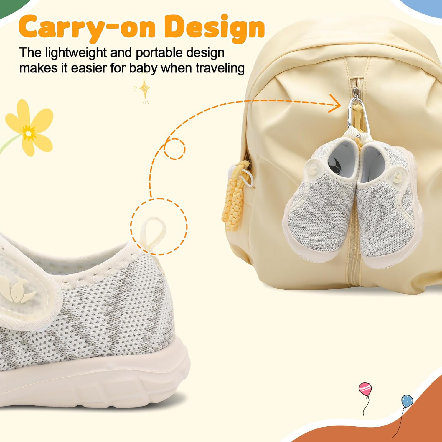 - Upper:Knitted Mesh Upper offers comfort and air permeability,has excellent breathability,moisture wicking function,and keep baby's feet dry and odorless.Super Soft,Breathable and Comfortable fit all the year