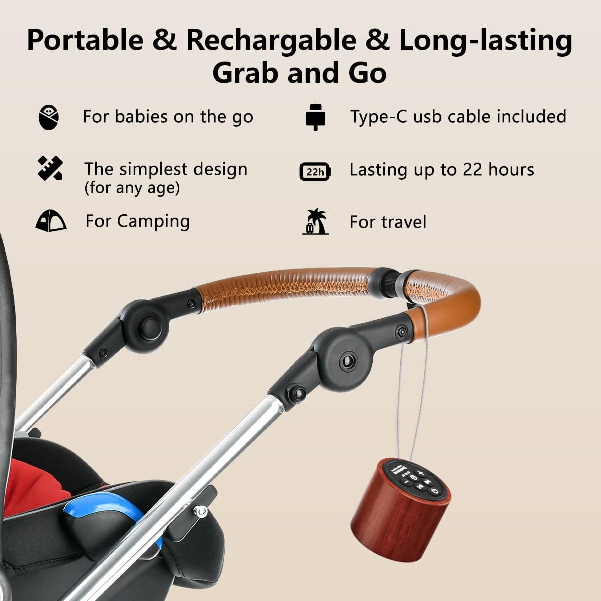 - 💐【Mini Size & Super Loudspeaker】The portable baby sound machine has the highest volume on the market for a mini sound machine, which can create a suitable atmosphere for baby, kids, adults and the elderly . And this baby sleep soother sound machine is pocket-sized and lightweight, which can be carried around to anywhere. It has fully functions with 30 soothing sleep sounds, 32 volume levels, timer setting, memory function, rechargeable battery and hanging rope, which is perfect for taking care of babies, travel, home or office.