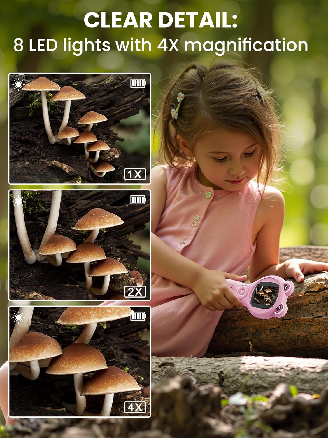 - 8 Adjustable LED Lights: This handheld microscope for kids is equipped with 8 LED lights for supplemental light to get clear images even in low light conditions. Both optical and electronic imaging methods are used, allowing kids to explore the microscopic world in a variety of ways