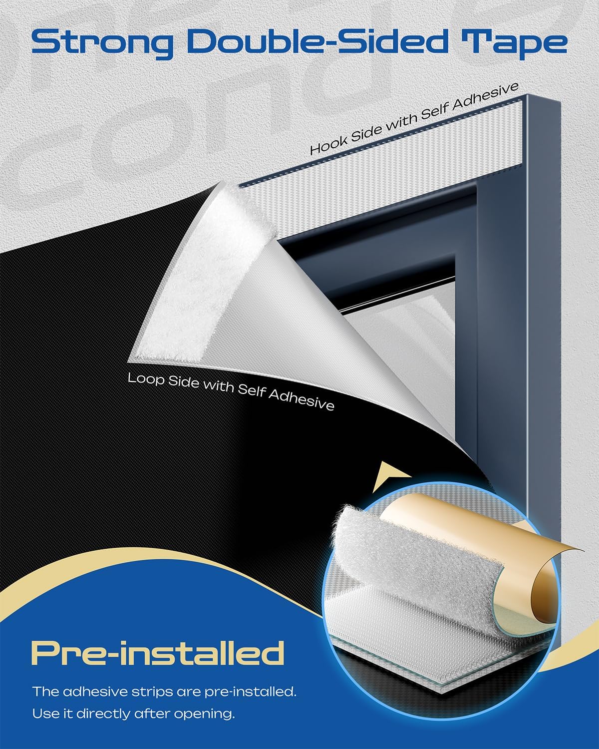 - Upgraded Hook & Loop Installation - Featuring industrial-grade Hook & Loop tape, no drilling or professional tools are needed. Simply fix the patches on the window frame (suitable for both flat and curved surfaces), align the window curtains, and press to complete the installation in just a few minutes. For creases, iron at 120ββ150β with a cloth to maintain the durability of the fabric and fastener