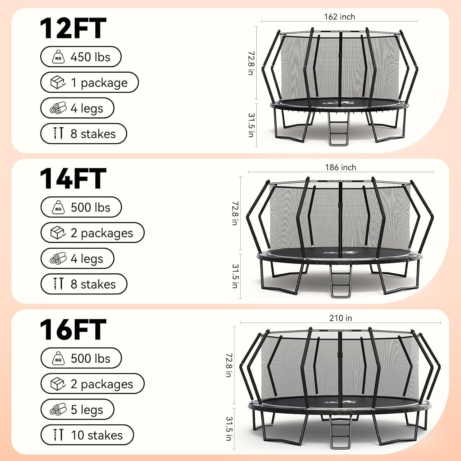 BCAN 8FT 10FT 12FT 14FT 15FT 16FT Recreational Trampoline with Enclosure for Kids Adults, ASTM Approved, Outdoor Trampolines with Ladder for Kids