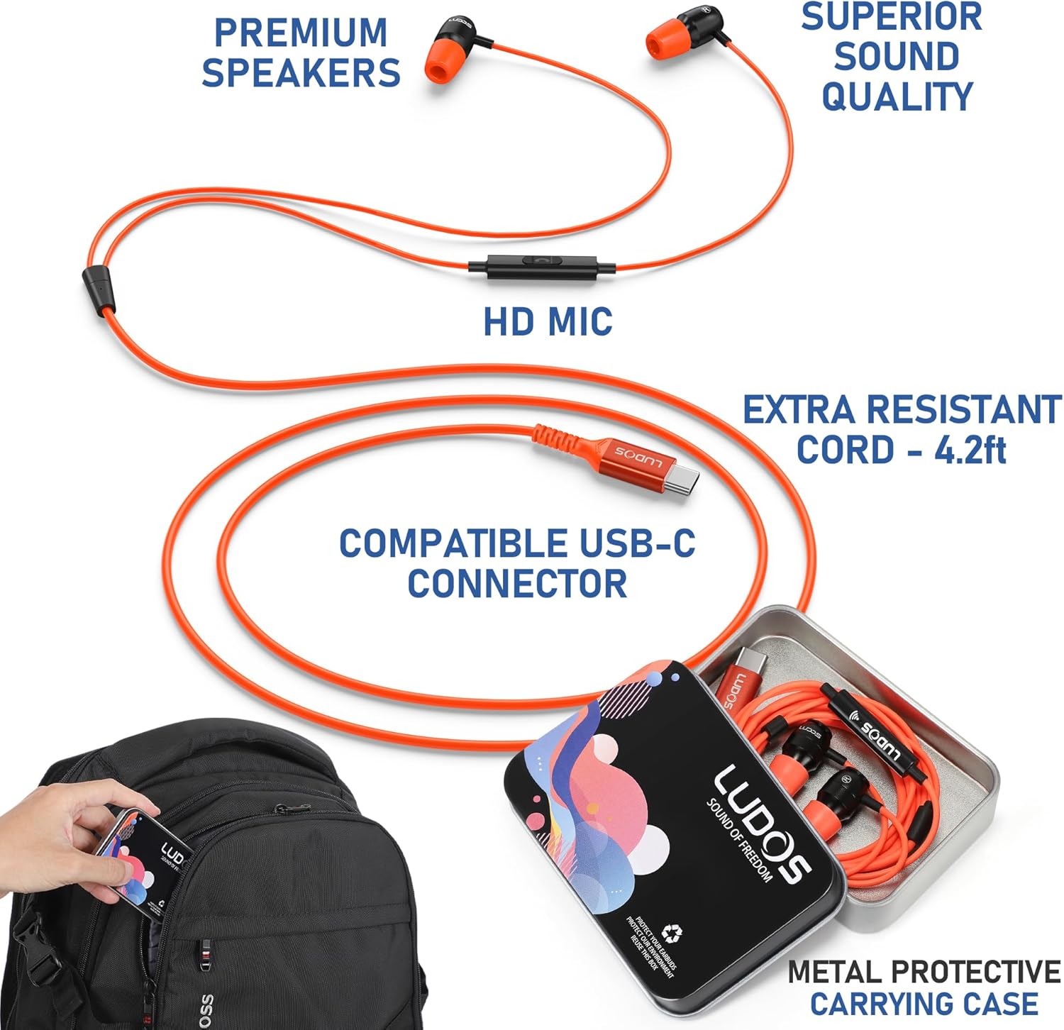 - AUDIO EXPERT CRAFTED β the LUDOS CLAMOR Type C earbuds with microphone wired has undergone stringent quality inspection and many hours of development with leading audio experts; Our USB C earbuds deliver crisp, pounding bass and clear tones; We will not sell them unless we test it ourselves