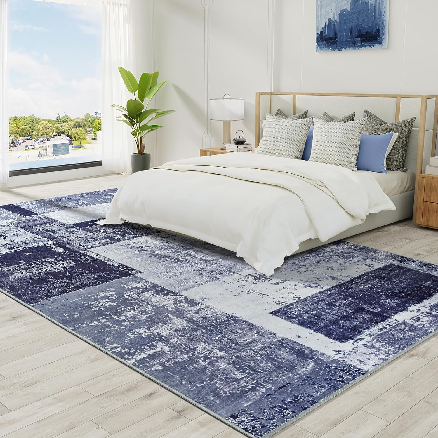LOCHAS Rug for Living Room, Washable Soft Area Rugs for Bedroom 6x9, Abstract Carpet for Indoor Office Kids Dining Room Nursery Floor, Blue Geometric Vintage Home Decor, Non Slip, Pet Child Friendly