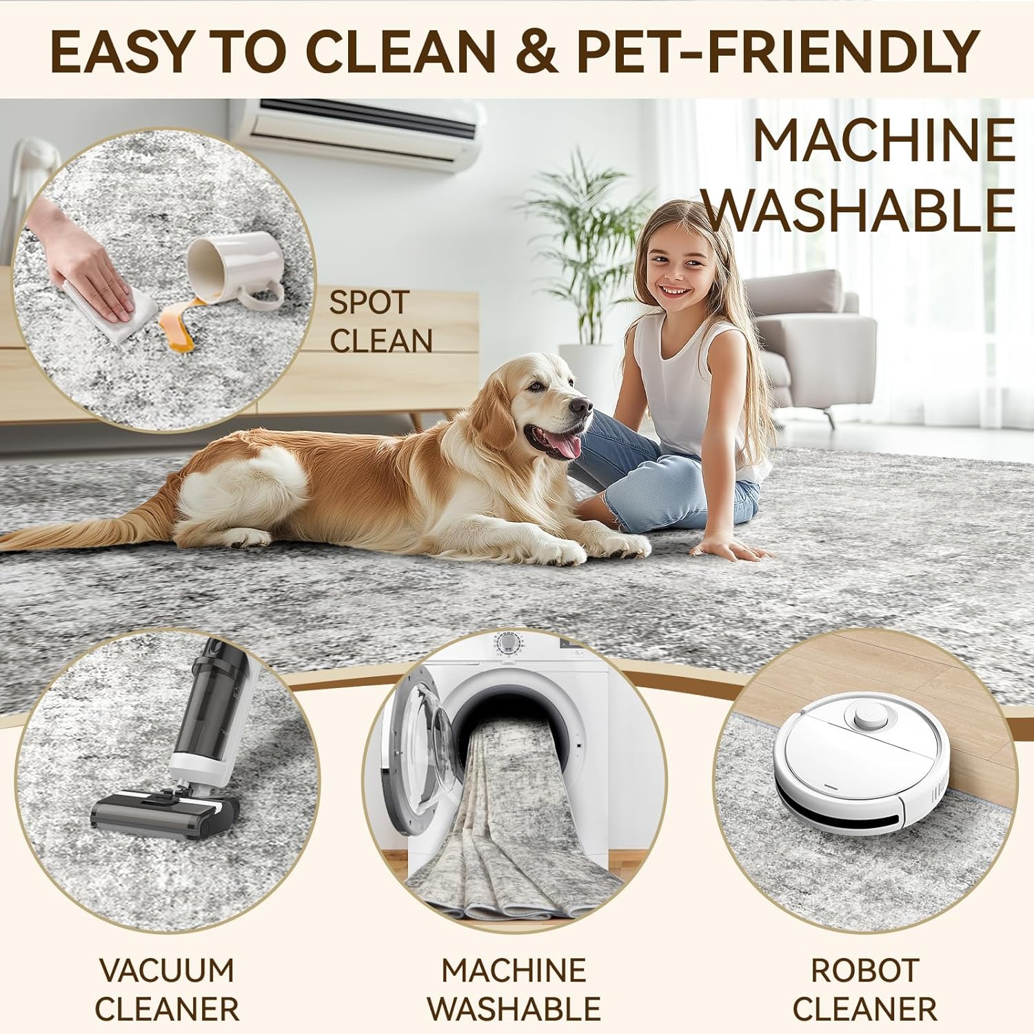 - Tides Series β Effortless style that flows with your life.This modern machine-washable non-slip rug features reinforced edges and a low-pile design that resists dirt. Its water-repellent surface makes spills easy to clean - liquids bead up for quick wiping. Simply machine wash in cold water (no bleach) to refresh. The non-slip backing keeps it securely in place. A perfect blend of function and contemporary design for active homes.