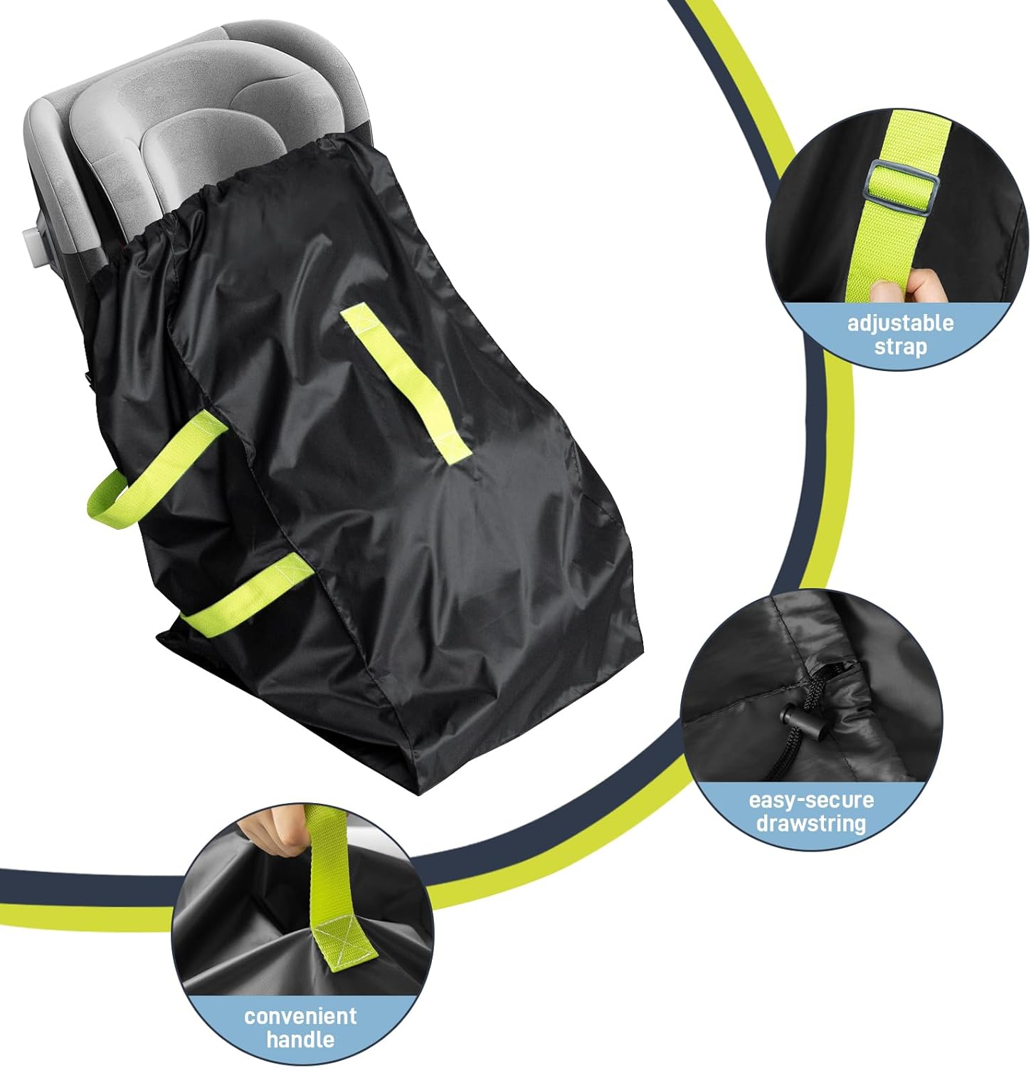 - Durable & Lightweight: The carseat travel bag is made of thick tarp and water-resistant material, which makes it more durable than those plastic bags, It's designed to withstand luggage weight up to 45 pounds, making it the ideal car seat travel bag.