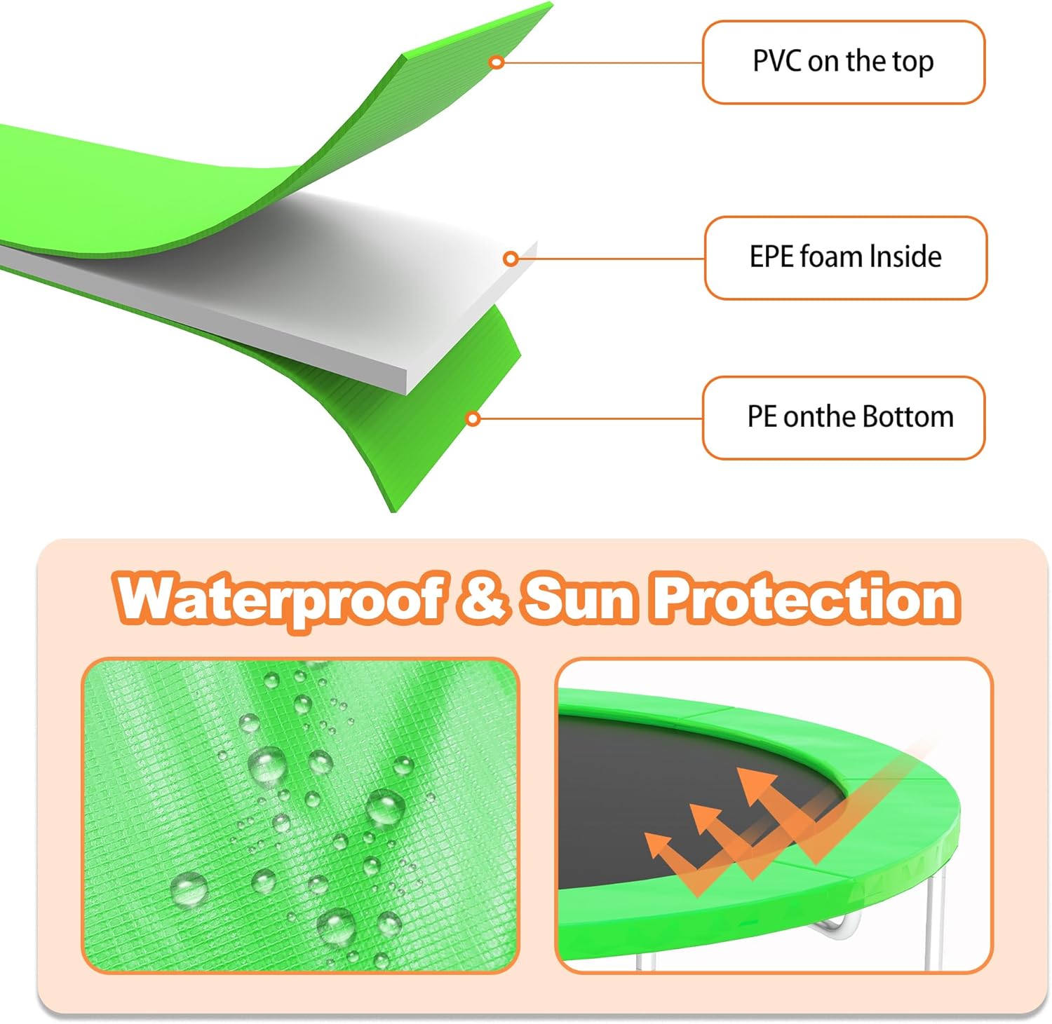 - 【Excellent Protection And Bumping Experience】Our trampoline safety mat covers exposed trampoline springs and provides effective cushioning for the user. Made of thick EPE closed cell foam, it can protect your children and family members from injuries. As a result, user safety and bouncing experience can be effectively ensured.