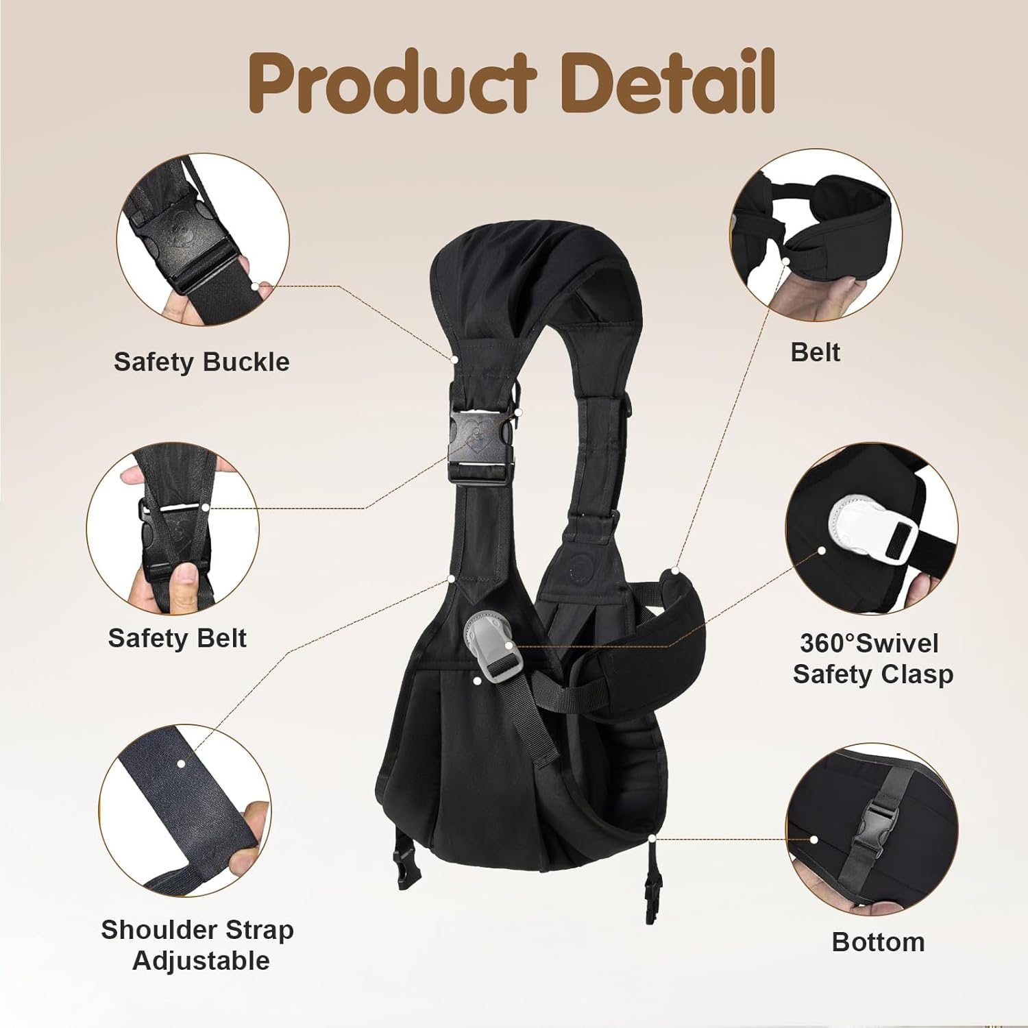 - [Upgrade Design]:This baby sling carrier comes with a separate waist harness.You can adjust the position of the harness on the baby's back according to the actual situation. The seat belt can be adjusted 360Β°to provide dual protection for the baby.