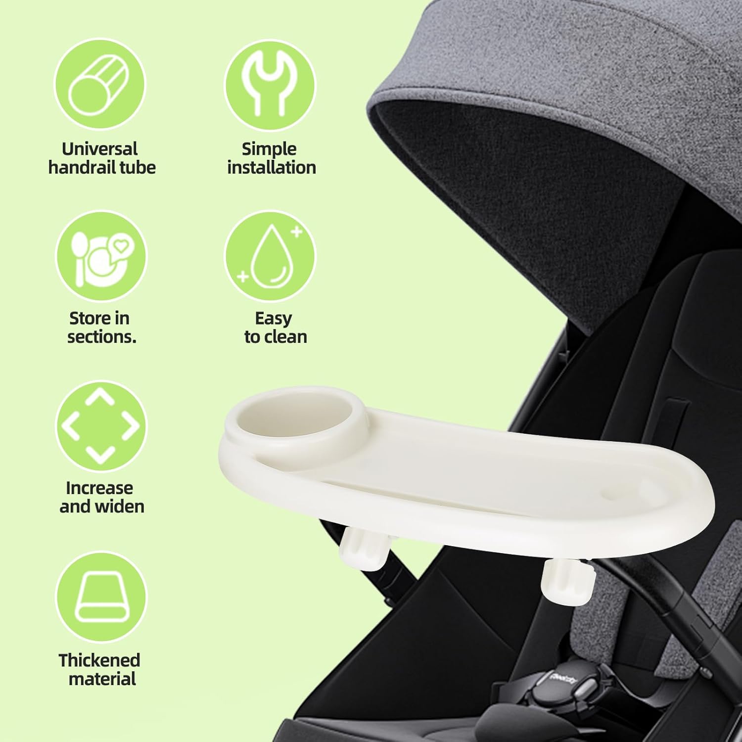 Stroller Snack Tray for Nuna, Cup Holder and Phone Holder, Easy Install, White
