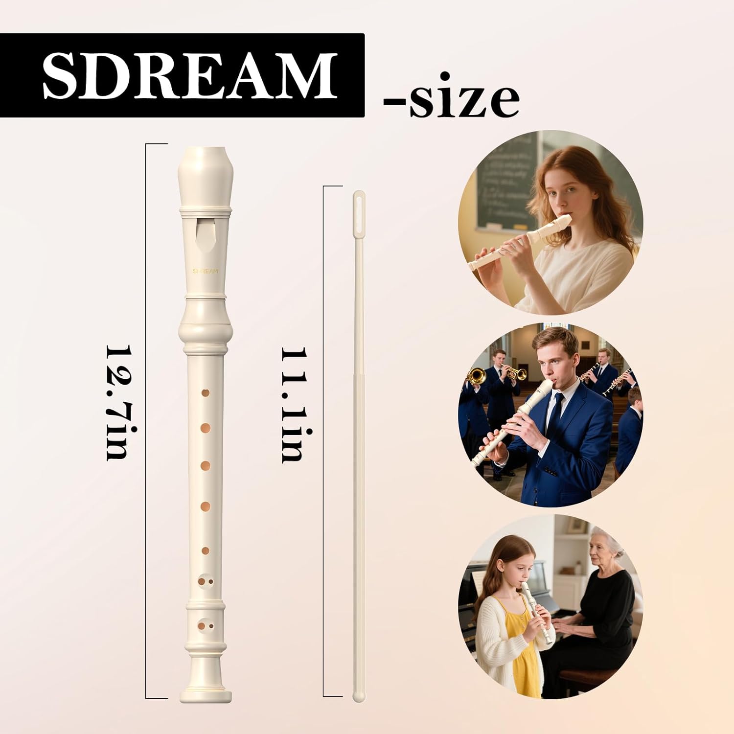 SDREAM Soprano Recorder Instrument for Kids Beginners&Student,8 Hole German Fingering Recorder Flute with Cleaning Rod & Leather Bag (White)