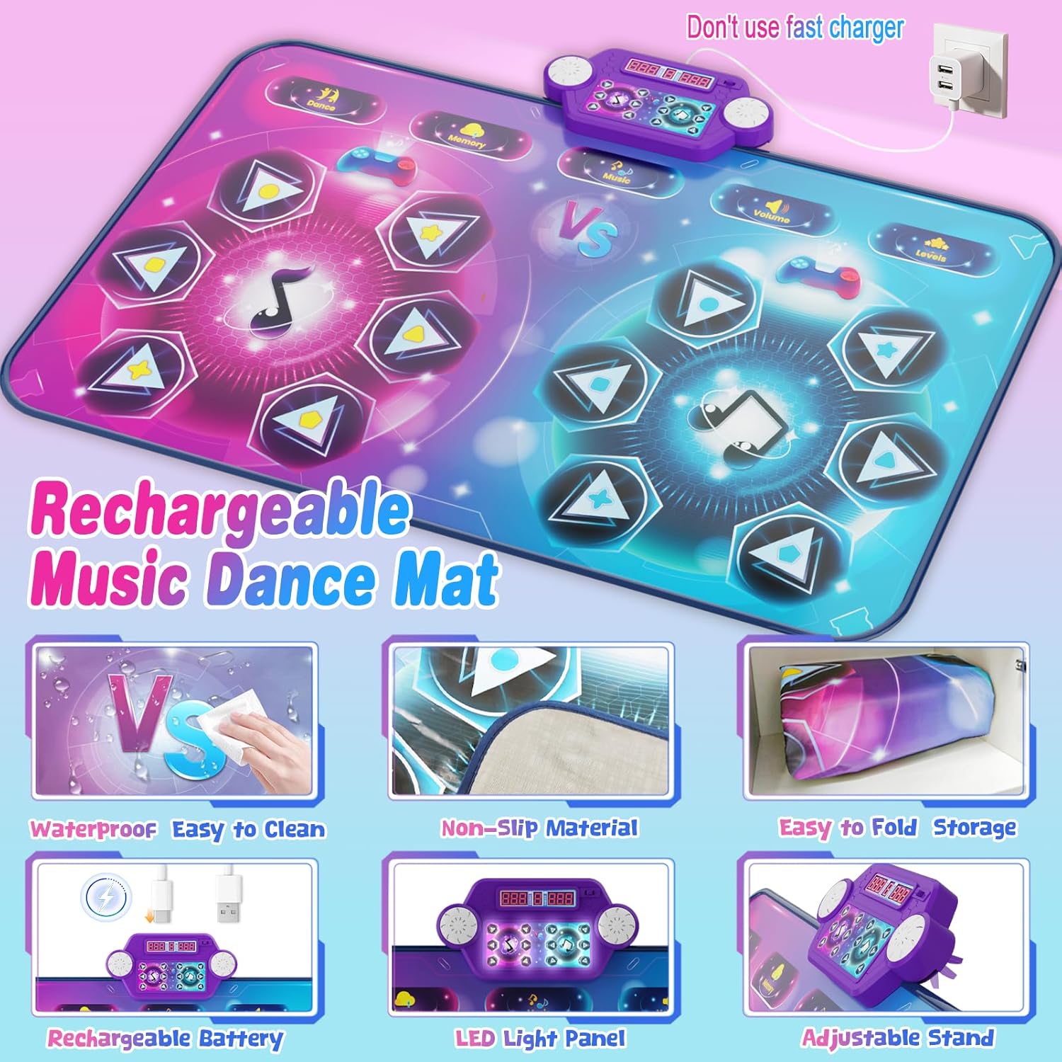Rechargeable Dance Mat - Double User Play Mat with Extra Large Size (59*38 in), Dancing Music, Challenge Game, Piano Mode, LED Lights, Christmas Birthday Gift for Kids Girls Boys 3-12 Year Old